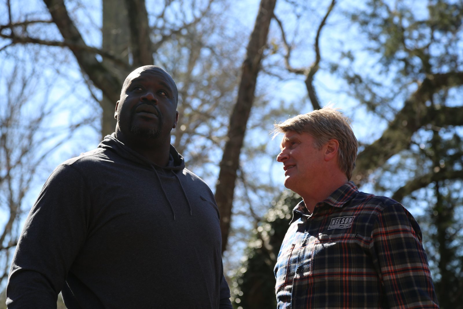 Eine Männerhöhle für Shaquille O'NealL-R: Shaquille O'Neal and Pete Nelson.Bild: © Animal Planet / Discovery Communications