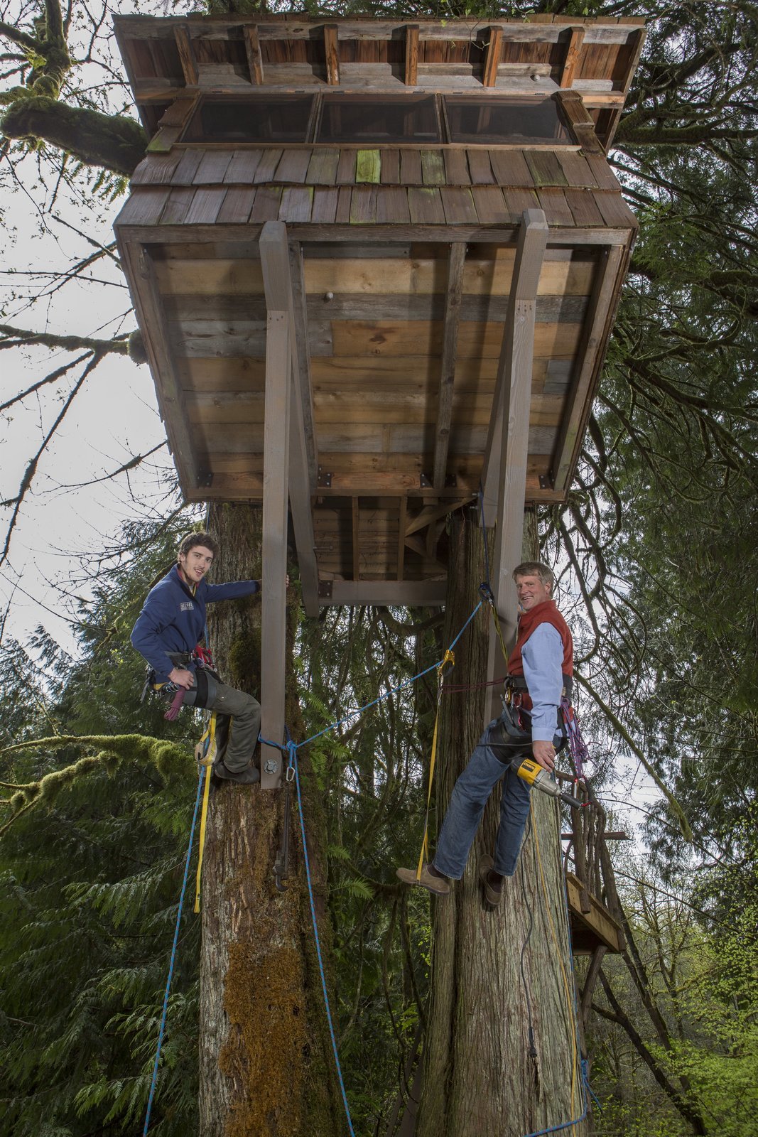 Garten-BungalowTreehouse Masters' Pete Nelson and son Charlie hang as they work on a treehouse at Treehouse Point.Bild: © Copyright: Discovery Communications, Inc. For Show Promotion Only