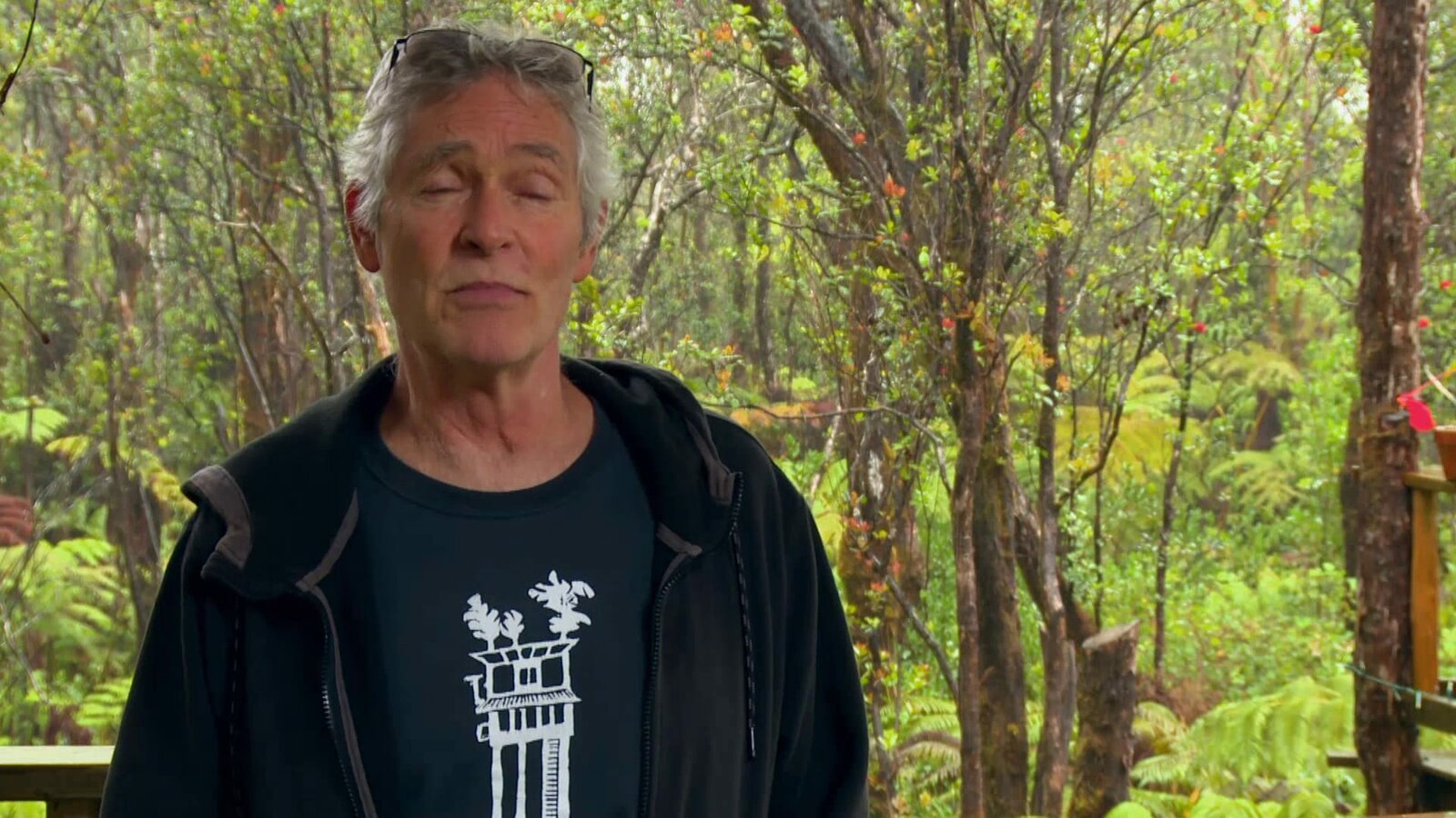 Eine echte MännerhöhlePete Nelson tests the furniture going into the tree house.Bild: © Discovery Communications