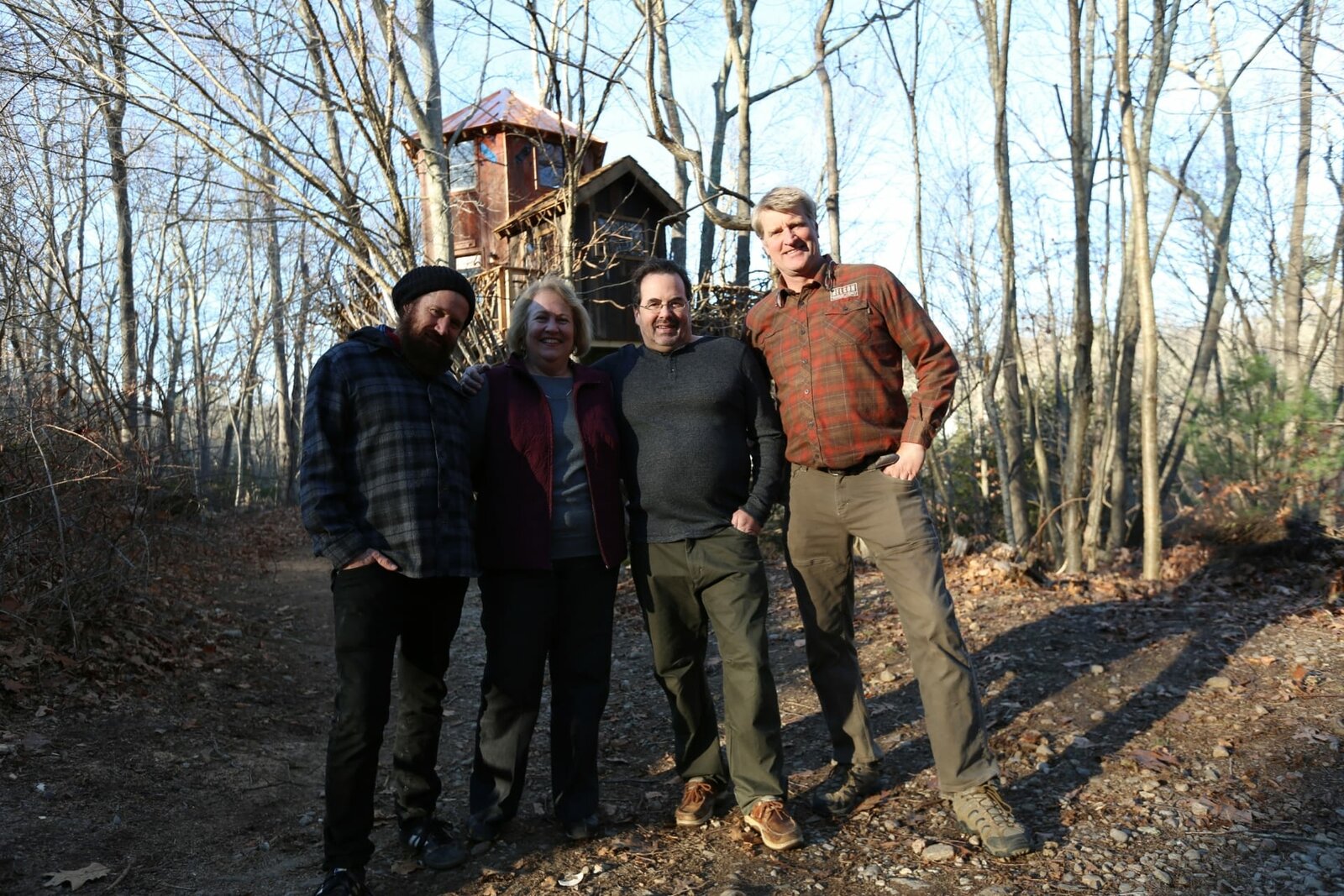 Schaumkronen und BaumkronenPete Nelson with the recipients of the treehouse during the reveal.Bild: © Animal Planet