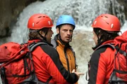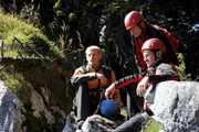 Mit letzter Kraft - Teil 2Andreas (Martin Gruber, M.) hat Emma (Pria Soppa, r.) trotz des Unfalls ihrer Mutter zum Ziel gebracht. Das Mädchen wollte unbedingt zu seiner Klettergruppe.Bild: © ZDF und Thomas R. Schumann