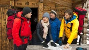 Wettersturz - Teil 1Rolf Trambacher (Florian Odendahl, l.) trifft beim Abstieg die Kinder von Emilie. Hanna (Antonia Wiedemann, M.) und Lukas (Dustin Raschdorf, r.) warten auf Tobias, doch von dem ist weit und breit nichts zu sehen.Bild: © ZDF und Thomas R. Schumann