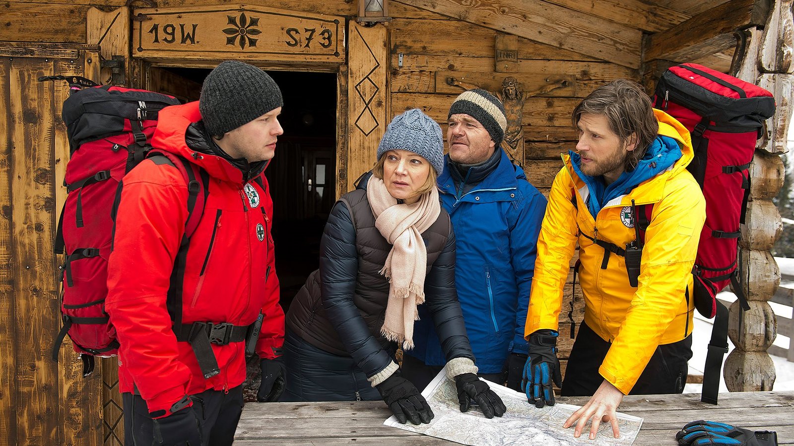 Der vermisste Sohn - Teil 2Statt sich als Patient behandeln zu lassen, entscheidet sich Andreas für die Rolle des Retters.Die Bergretter sind erneut im Einsatz. Von links: Andreas Marthaler (Martin Gruber), Bea Kleinert (Paula Paul), Tobias Herbrechter (Markus Brandl), Michael Dörfler (Robert Lohr). Honorarfrei - nur für diese Sendung bei Nennung ZDF und Thomas R. SchumannBild: © ZDF und Thomas R. Schumann
