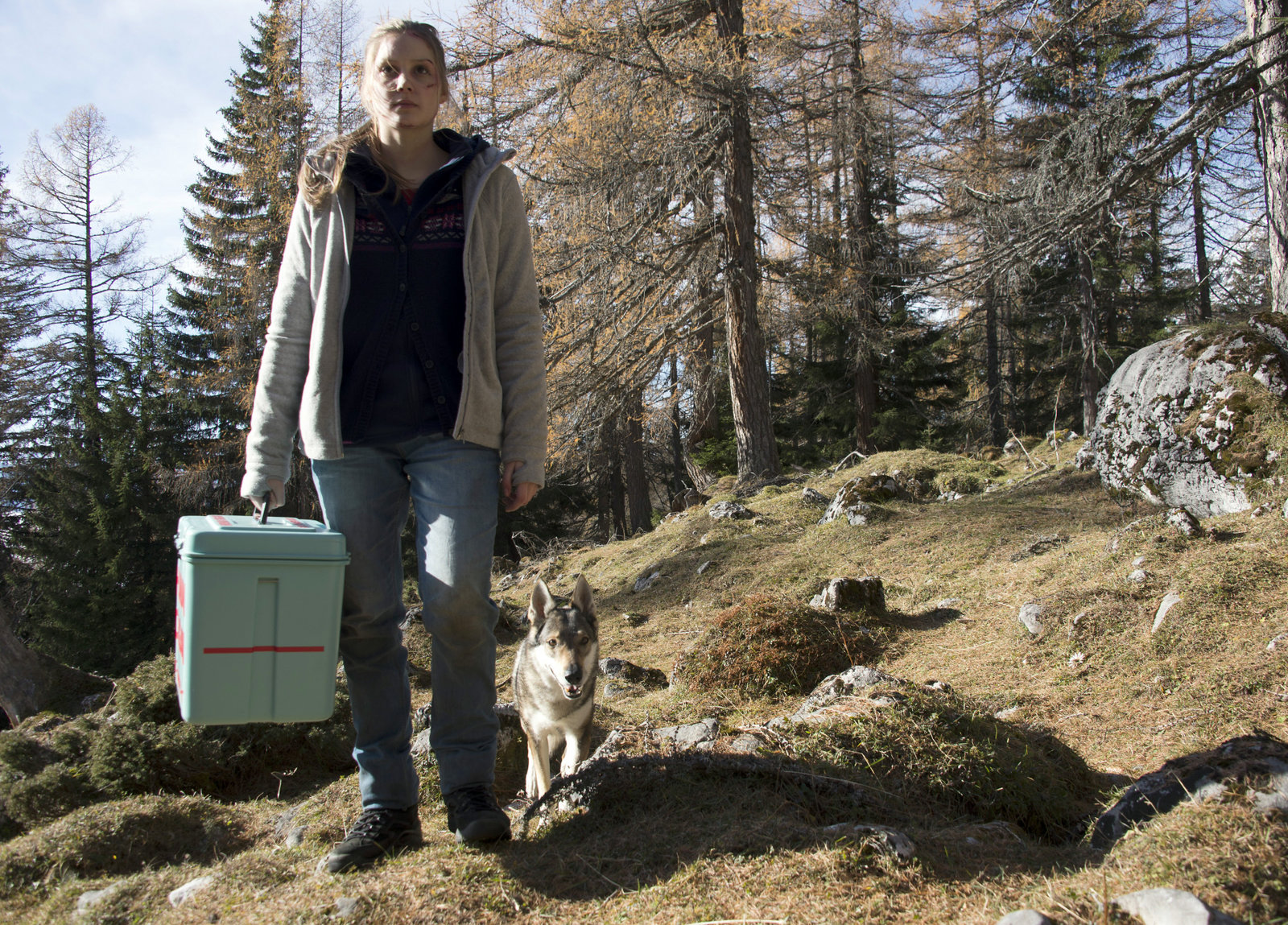 Das fremde Mädchen - Teil 1Mit lebenswichtigem Gepäck irrt die authistische Laura (Maja Celine Probst) alleine durch die Berge, nur gefolgt von einem Wolf.Bild: © ZDF und Thomas R. Schumann