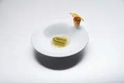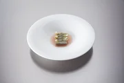 Nicolai NørregaardNicolai Nørregaard, Gastkoch Oktober 2017, Gericht, Restaurant Ikarus, Hangar-7, Salzburg, Österreich, 2017.10.01, Gemüseterrine, Kirschblütenöl, fermentierte TomateBild: © BonGusto