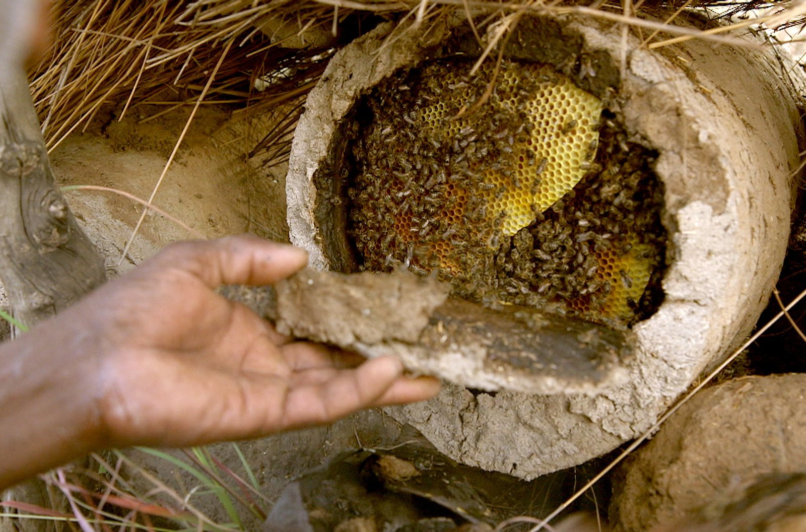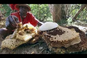 Kenia - Die Biene, die Yaaku und der VogelWährend der Ernte achtet Nicholas darauf, etwas von dem Honig zurückzulassen, damit der Bienenschwarm sich keinen neuen Stock sucht.Bild: © arte