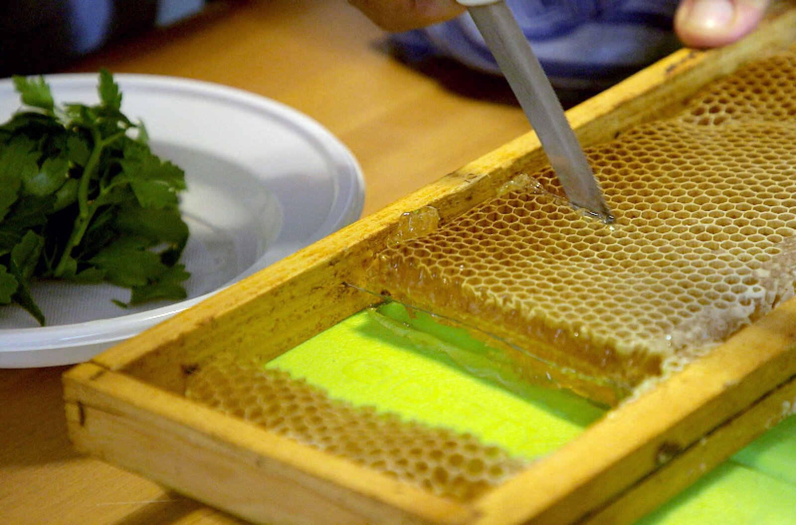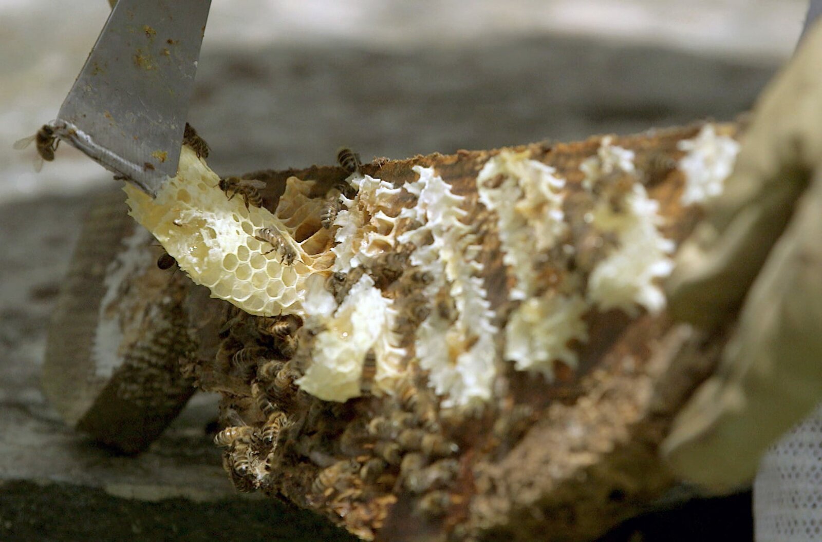 Frankreich - Der BienenhirteBienenwaben auf dem Holzdeckel des Bienenstockstamms der Dunklen HonigbieneBild: © arte