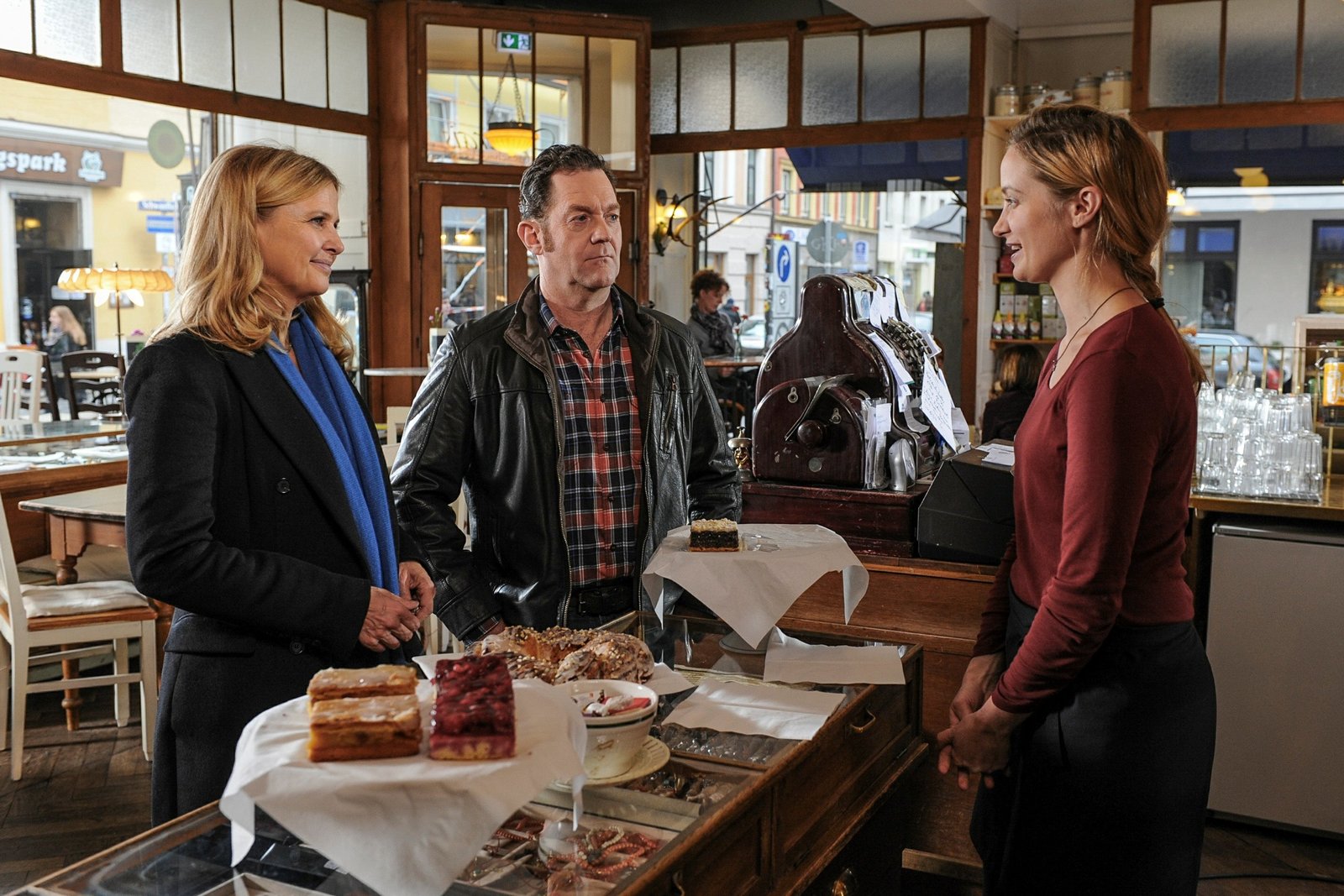 OktoberfestCarla Schäfer (Raphaela Möst, r.) kann den Kommissaren Vera Lanz (Katharina Böhm, l.) und Paul Böhmer (Jürgen Tonkel, M.) bei den Ermittlungen behilflich sein. in Verbindung mit der Sendung bei Nennung ZDF/Michael MarhofferBild: © ZDF/Michael Marhoffer