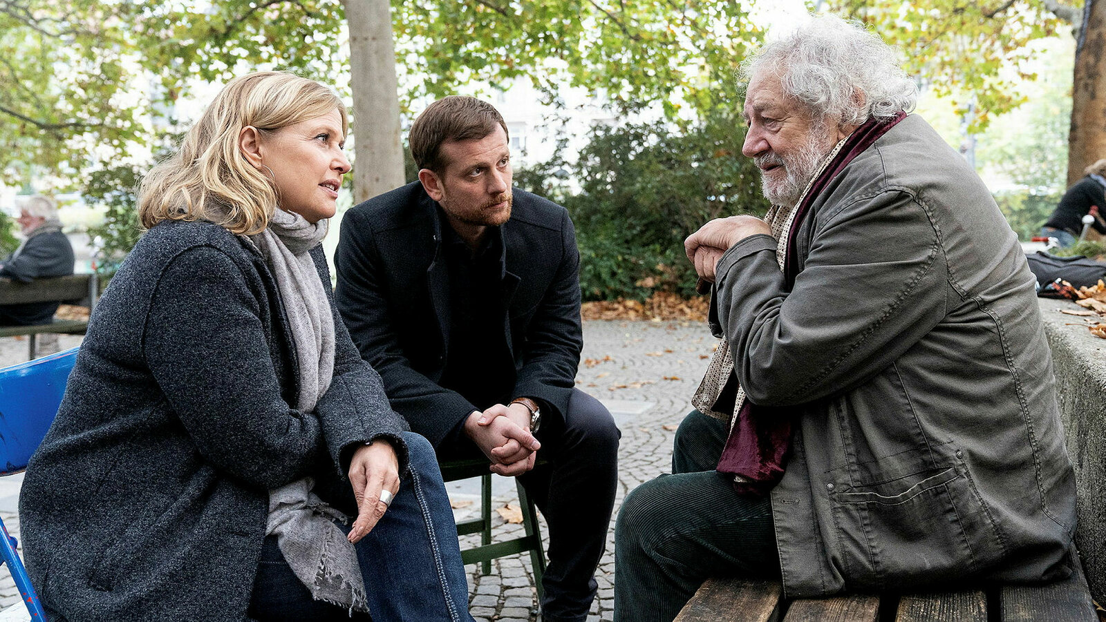 WillenlosTeambesprechung: Katharina Böhm als Vera Lanz, Jürgen Tonkel als Paul Böhmer, Christoph Schechinger als Maximilian MurnauBild: © SRF / ZDF/Michael Marhoffer