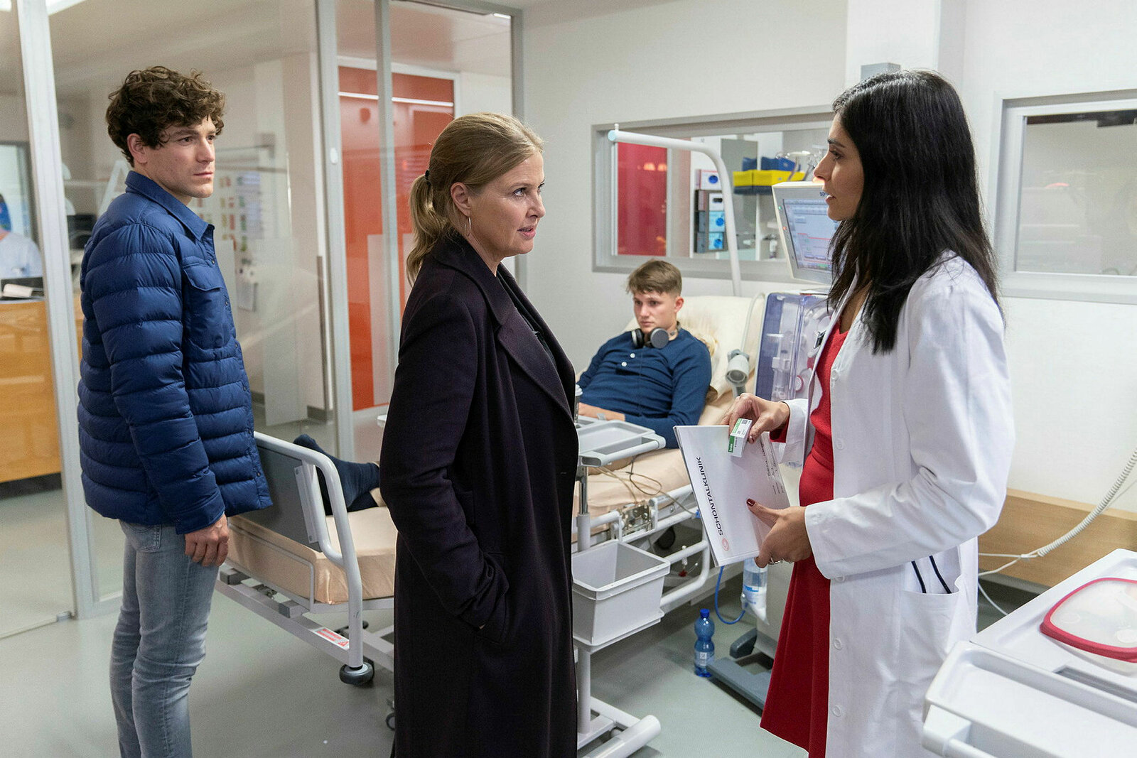 DeadlineDie Chefin Deadline Jonathan Hutter als Korbinian Kirchner, Katharina Böhm als Vera Lanz, Leon Blaschke als Florian Blanke, Pegah Ferydoni als Dr. Leyla SRF/ZDF/Michael MarhofferBild: © SRF1