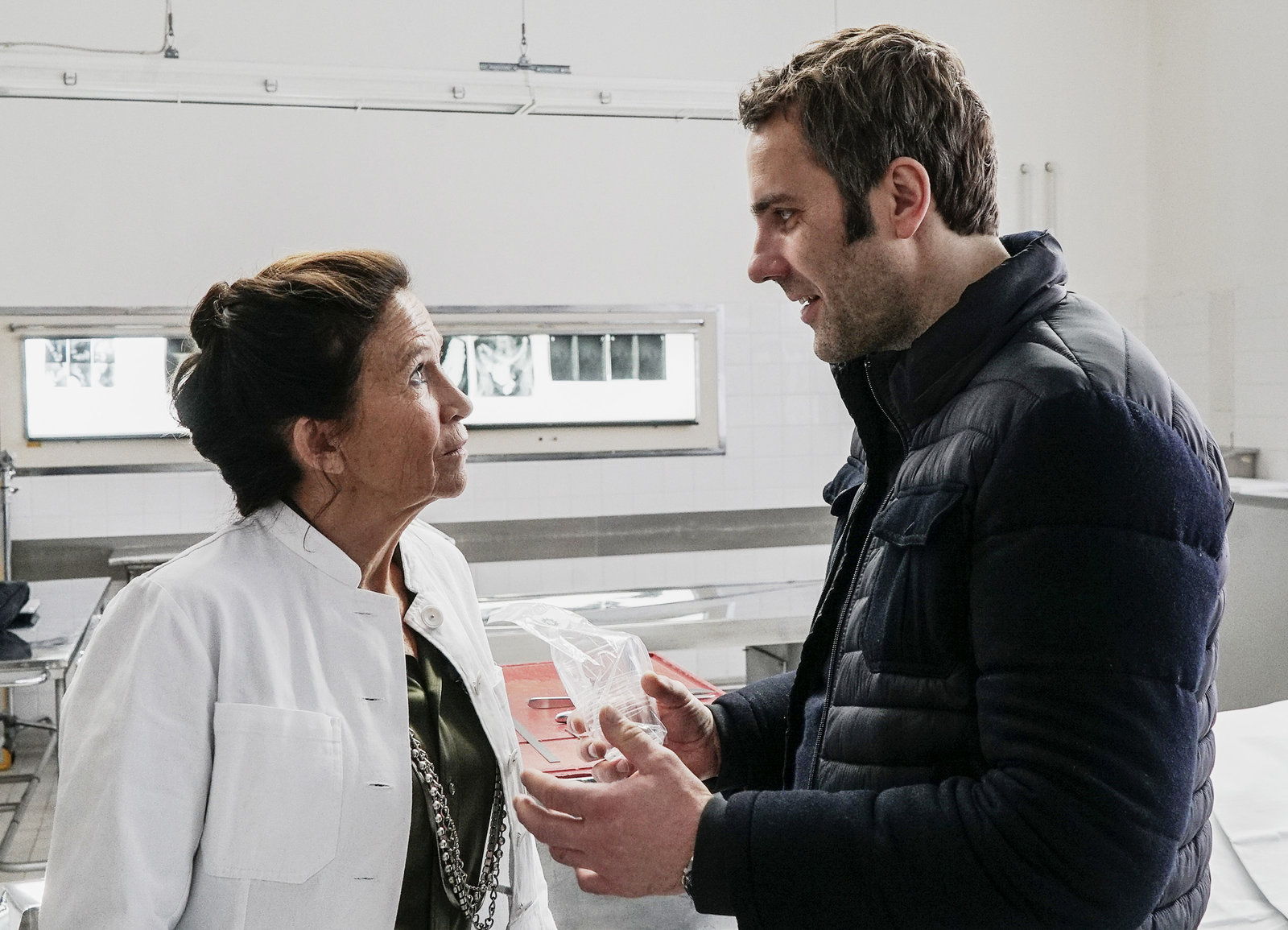 Zieh dich ausHauptkommissarin Lanz (Katharina Bhm) glaubt Dr. Schrders (Robert Giggenbach) Aussagen nicht.Bild: © Sky Krimi