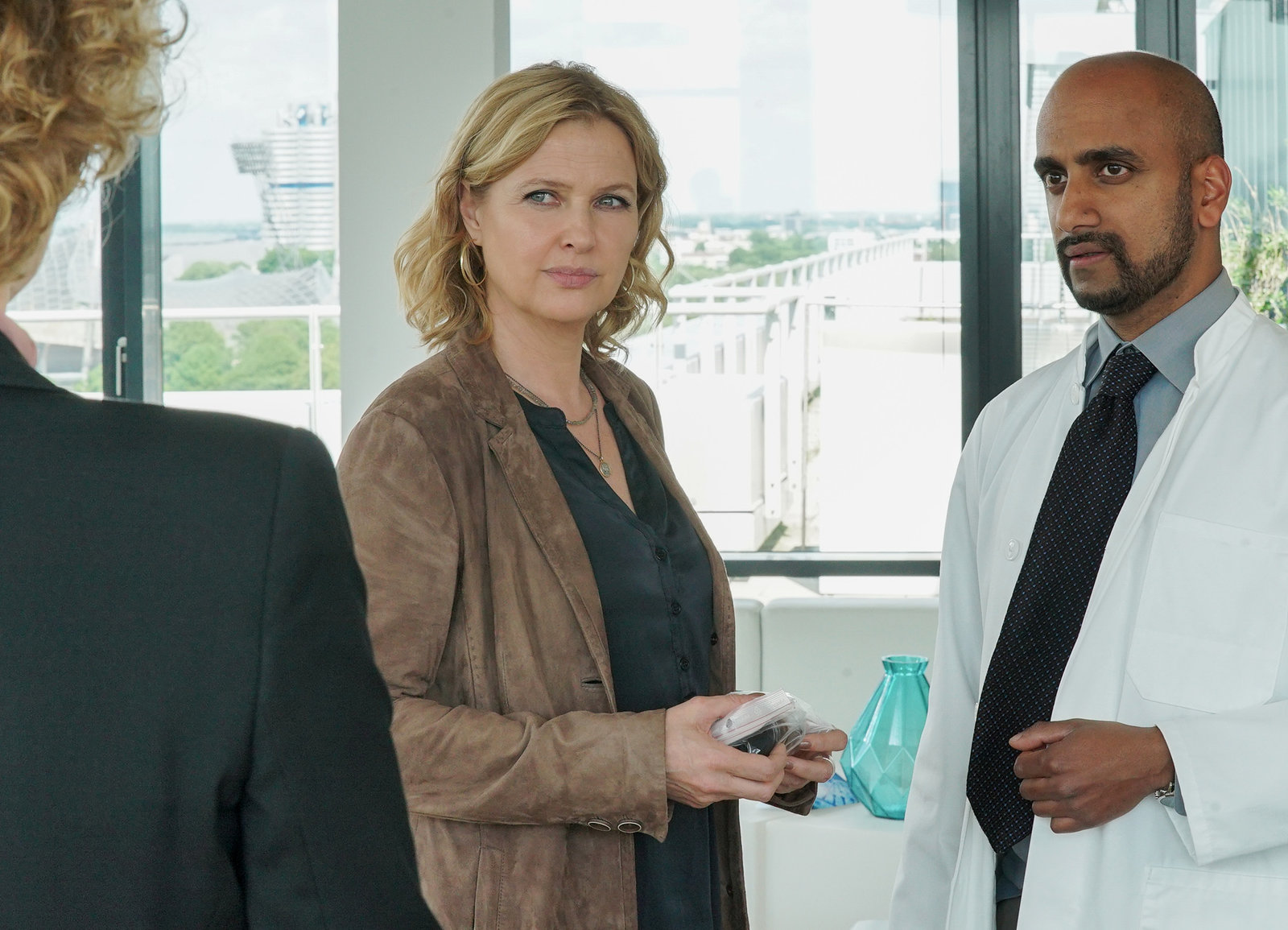 Der NeueEine Spur führt zum Leiter der Medikamenten-Studie: Katharina Böhm als Vera Lanz, Murali Perumal als Dr. Hassan AdilBild: © SRF/ ZDF/ Michael Marhoffer