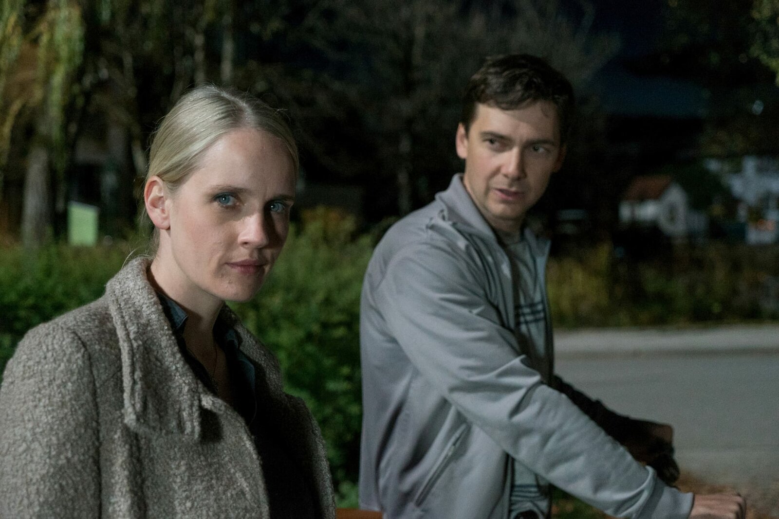 AbrechnungDer Polizist und die Joggerin: Stefan Rudolf als Jan Trompeter, Peri Baumeister als Jessica KempfBild: © SRF / ZDF/Michael Marhoffer