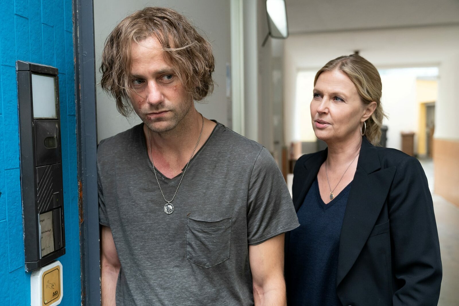 Fremder SohnDrogenjunkie Christian Probst (Florian Stetter) wird von Vera Lanz (Katharina Böhm) verhört was hat er mit dem Fall zu tun?Bild: © Michael Marhoffer / Die Verwendung ist nur bei redak / ZDF / © ZDF/Michael Marhoffer