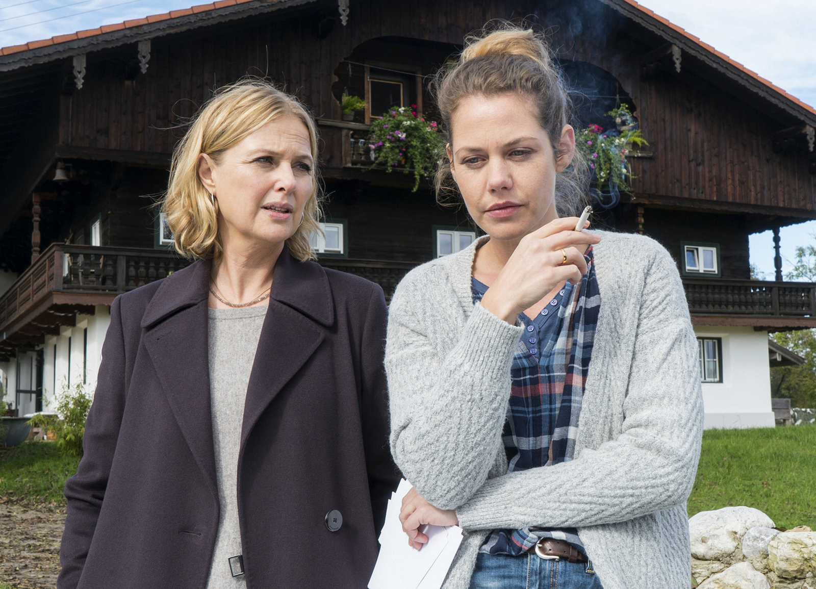 Ein ehrenwertes HausErste Befragung der Nachbarin: Katharina Böhm als Vera Lanz, Jennifer Ulrich als Netty DührBild: © SRF / ZDF/ Michael Marhoffer