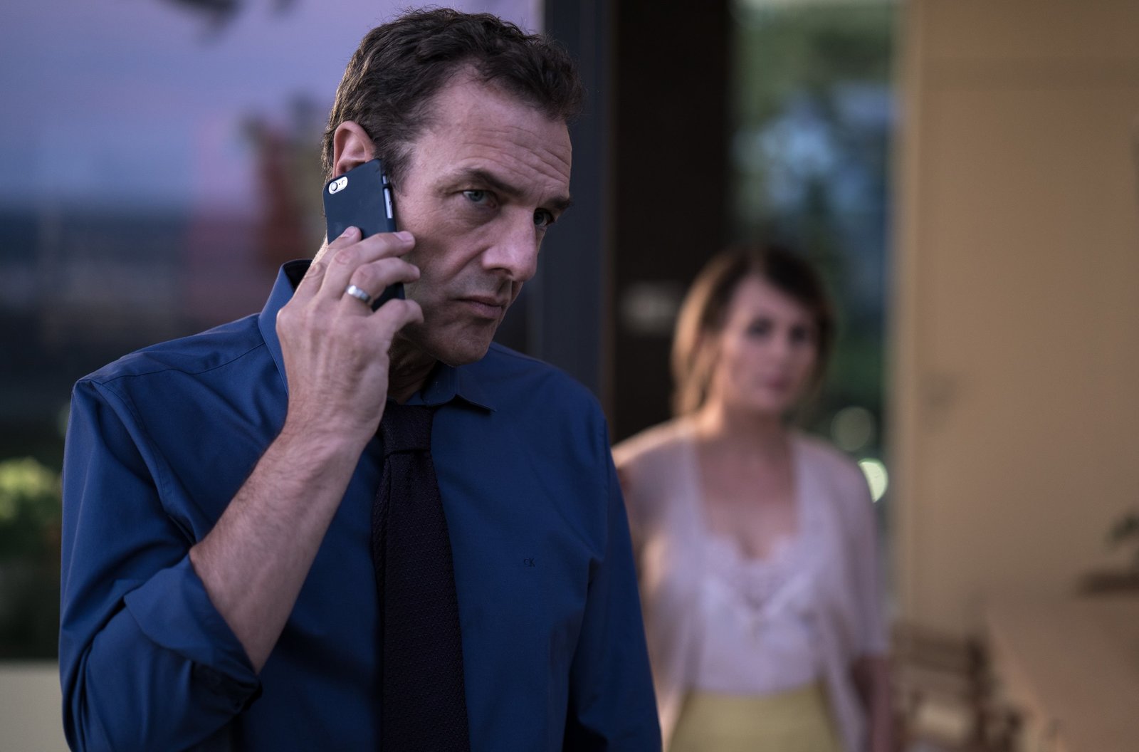 Böses SpielBotschafter Claude Beaumont (Jean-Yves Berteloot) schirmt seine Familie vor den Ermittlungen ab. Im Hintergrund ist seine Frau Margo (Jeanne Tremsal).Bild: © ARD Degeto / Roland Suso Richter