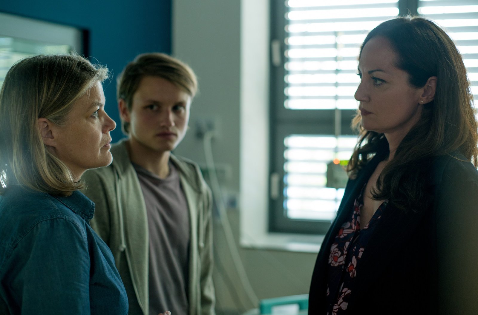 Böses SpielARD Degeto DIE DIPLOMATIN - BÖSES SPIEL, am Samstag (27.04.19) um 20:15 Uhr im ERSTEN. Botschafterin Karla Lorenz (Natalia Wörner, re.) spricht mit der Mutter Inga (Birge Schade) und dem Bruder Timo (Paul Lux) des Opfers. © ARD Degeto/Roland Suso Richter, honorarfrei - Verwendung gemäß der AGB im engen inhaltlichen, redaktionellen Zusammenhang mit genannter Degeto-Sendung und bei Nennung "Bild: ARD Degeto/Roland Suso Richter" (S2+). ARD Degeto/Programmplanung und Presse, Tel: 069/1509-335, degeto-presse@degeto.deBild: © ARD Degeto / Roland Suso Richter