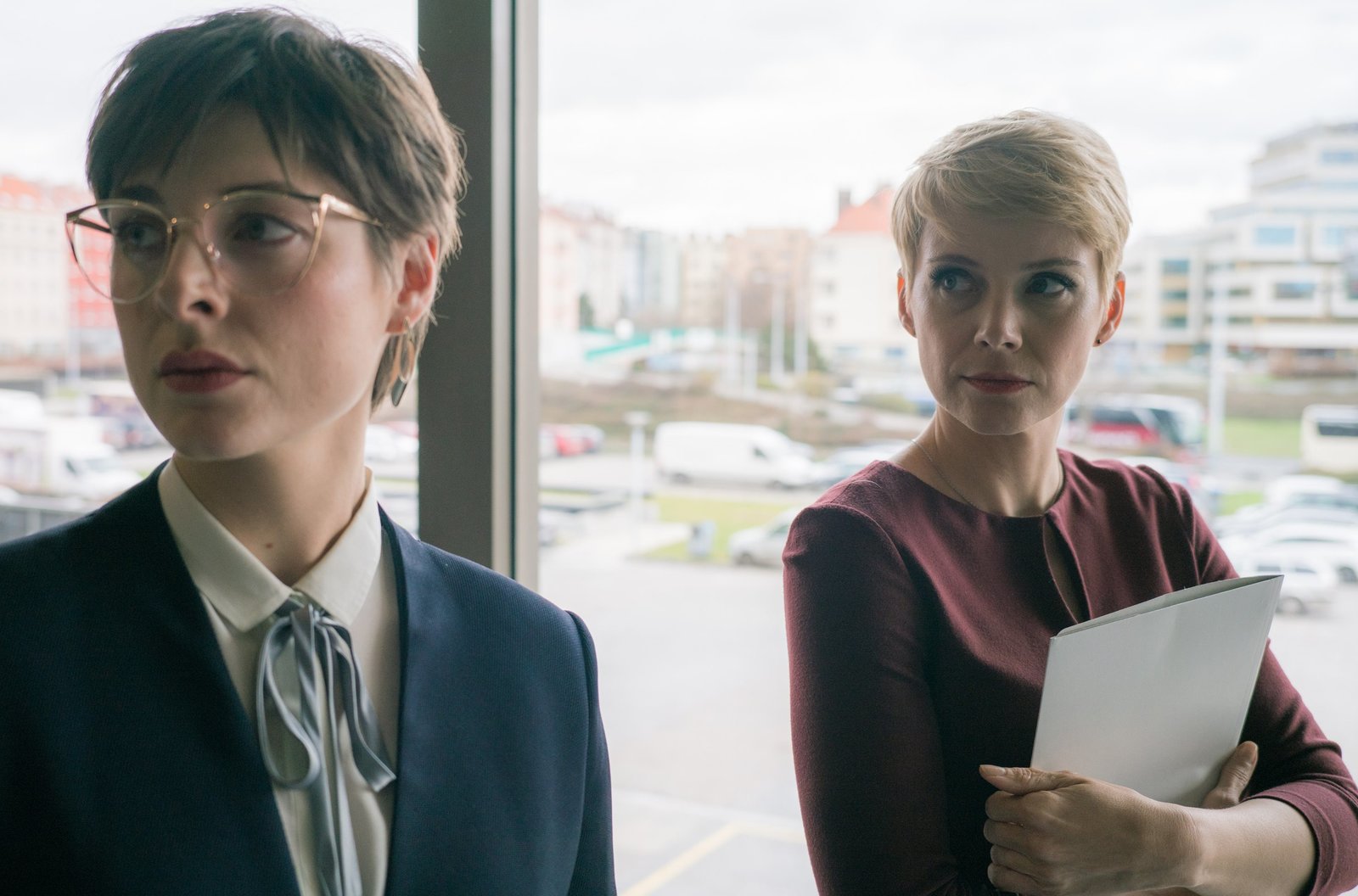 Tödliches AlibiStaatssekretärin Zdenek (Andrea Osvárt, re.) und ihre Mitarbeiterin Zuzana Novotny (Katharina Nesytowa) wollen den Skandal kleinhalten.Bild: © ARD Degeto/Roland Suso Richter