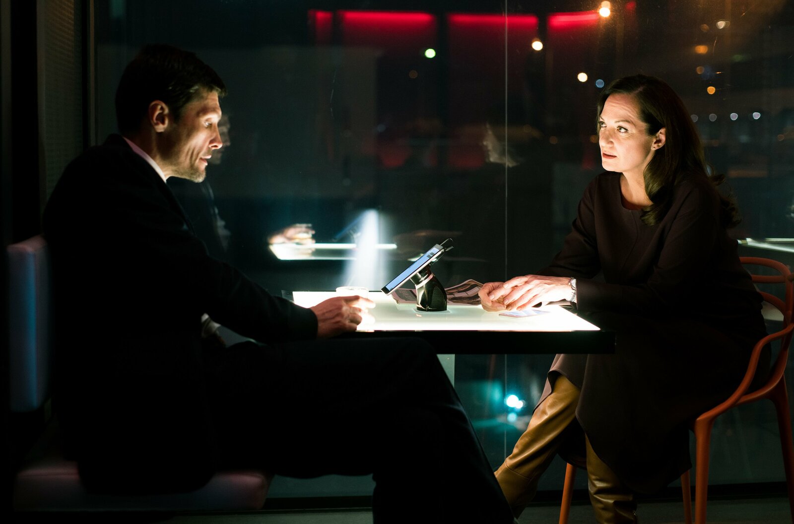 Tödliches AlibiKarla Lorenz (Natalia Wörner) trifft sich mit dem charismatischen Ministerialbeamte Stokr (Stipe Erceg).Bild: © ARD Degeto/Roland Suso Richter