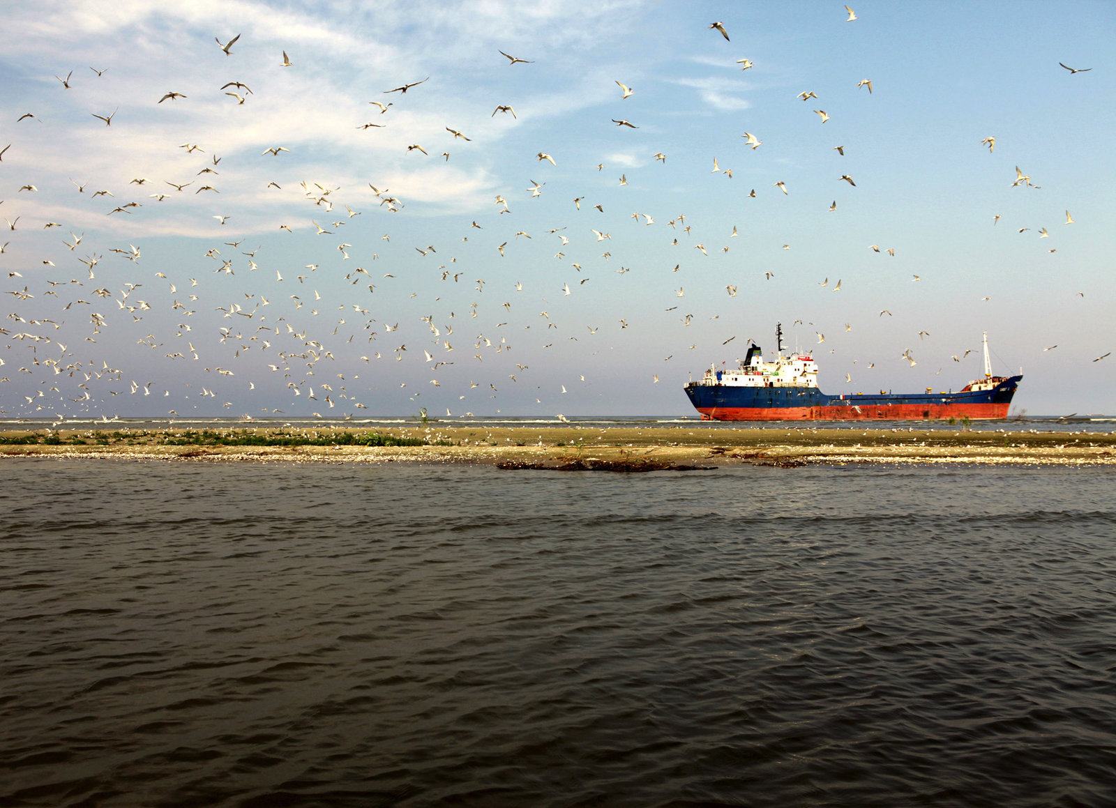 Vom Schwarzwald zum Schwarzen MeerFrachter und Vogelkolonie im Donaudelta/ RumänienBild: © ARTE/ORF / © ORF/ScienceVision/Rita Schlamberger