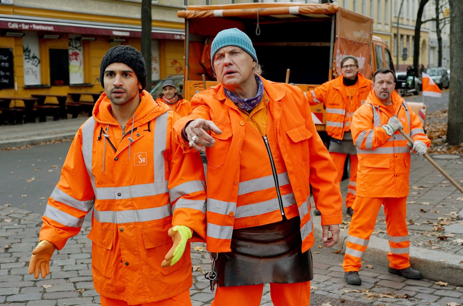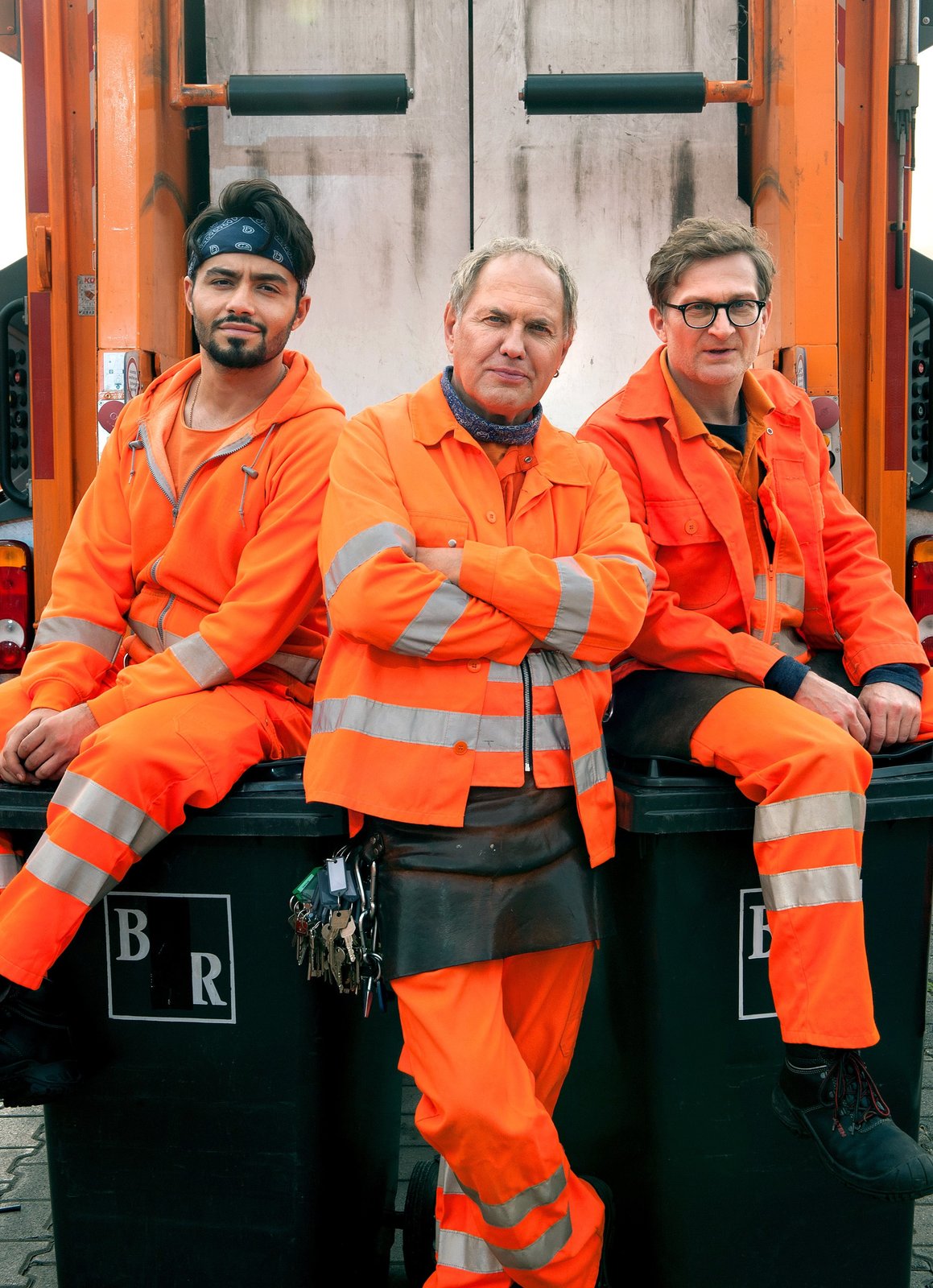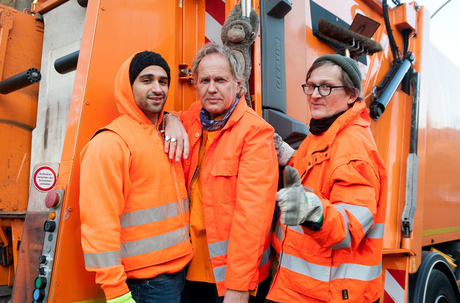 Baby an BordARD Degeto DIE DREI VON DER MÜLLABFUHR - BABY AN BORD, am Freitag (05.04.19) um 20:15 Uhr und um 01:20 Uhr im ERSTEN. Werner (Uwe Ochsenknecht), Tarik (Daniel Rodic, li.), Ralle (Jörn Hentschel, hinten) und Straßenreiniger Udo (Denis Golme, re.) kommen den „falschen Müllmännern“ auf die Spur. © ARD Degeto/Britta Krehl, honorarfrei - Verwendung gemäß der AGB im engen inhaltlichen, redaktionellen Zusammenhang mit genannter Degeto-Sendung und bei Nennung "Bild: ARD Degeto/Britta Krehl" (S2+). ARD Degeto/Programmplanung und Presse, Tel: 069/1509-335, degeto-presse@degeto.deBild: © ARD Degeto/Britta Krehl