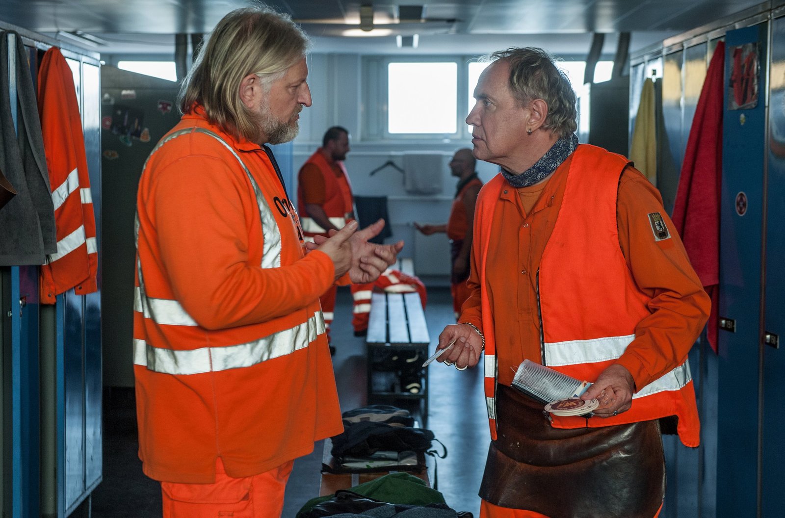 Dörte muss wegARD Degeto Drehstart für den zweiten Film „Baby an Bord“ (AT) der neuen ARD-Degeto-Reihe - Am 3. November 2018 haben in Berlin die Dreharbeiten für den zweiten Film der neuen ARD-Degeto-Reihe begonnen. Im Mittelpunkt von „Baby an Bord“ (AT) stehen wieder Werner „Käpt’n“ Träsch (Uwe Ochsenknecht) und seine beiden Kollegen Ralf (Jörn Hentschel) und Tarik (Daniel Rodic). In weiteren Rollen sind Rainer Strecker, Barnaby Metschurat, Marlene Burow, Lola Liefers, Adelheid Kleineidam, Axel Werner, Martin Glade u.v.m. zu sehen. Regie führt „Kieze-Kennerin“ Bettina Schoeller-Bouju, die u.a. auch zehn Folgen vom Hamburger „Großstadtrevier“ in Szene setzte. „Die Drei von der Müllabfuhr – Baby an Bord†(AT) ist eine Produktion der Bavaria Fiction (Produzentin: Doris Zander, Producerin: Elnas Isrusch) im Auftrag von ARD Degeto (Redaktion: Barbara Süßmann) für Das Erste. Das Drehbuch verfassten Christian Krüger und Sebastian Bleyl. Von links nach rechts: RaiBild: © ARD Degeto/Britta Krehl / ARD Degeto/Programmplanung und P