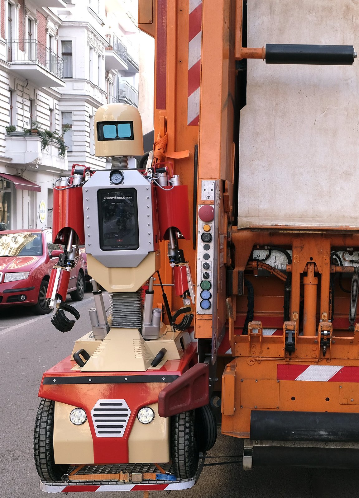 Dörte muss wegRoboter Dörte im Testlauf bei der Müllabfuhr.Bild: © ARD Degeto/Britta Krehl