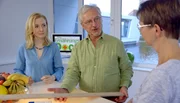 Folge 6Brot-Zeit: Ernährungs-Docs Anne Fleck (r.) und Jörn Klasen (l.) probieren mit Lena H. (m.) ein Spezialrezept aus Nüssen und Körnern.Bild: © NDR