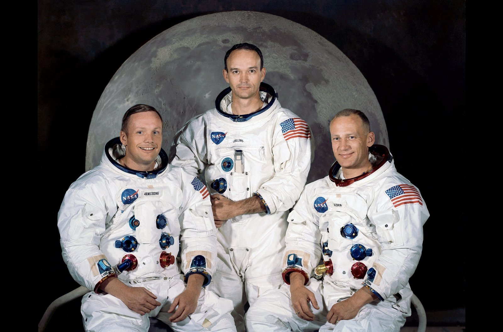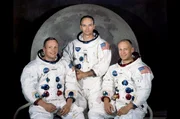 "... sondern gerade, weil es schwierig ist!" (J.F.K.)Im Januar 1969 stellte die Nasa die Astronauten vor, die mit "Apollo 11" zum Mond fliegen sollten: Buzz Aldrin (re.) und Neil Armstrong (li.) würden, unterstützt von Mike Collins (Mi.) im Kommandomodul, als erste Menschen den Erdtrabanten betreten.Bild: © ARTE France / © NASA