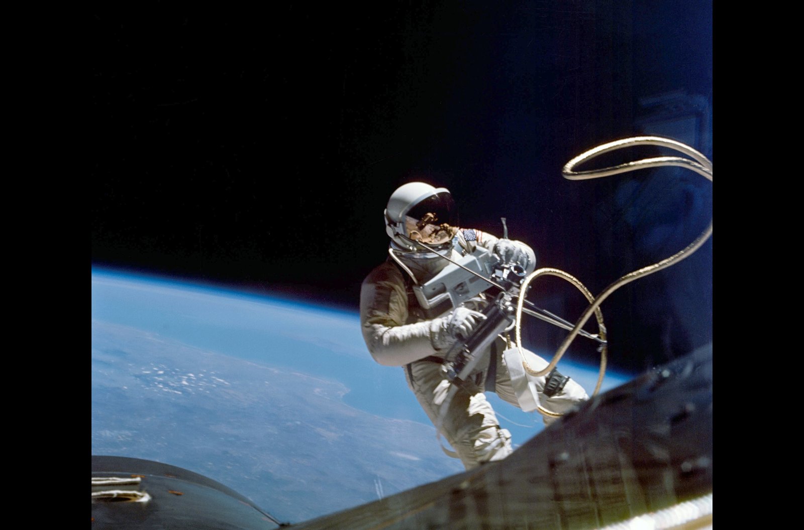 "... nicht, weil es leicht zu erreichen ist ..."Im Rahmen eines "Gemini"-Fluges absolvierte der Astronaut Ed White am 3. Juni 1965 als erster Amerikaner einen Weltraum-Spaziergang.Bild: © ARTE France / © NASA