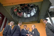 "... sondern gerade, weil es schwierig ist!" (J.F.K.)Der ehemalige US-Präsident Lyndon B. Johnson (Mi.) und neben ihm Spiro Agnew, amtierender Vizepräsident unter Richard Nixon, beim Start von "Apollo 11" im Kennedy Space Center am 16. Juli 1969Bild: © ARTE France / © NASA