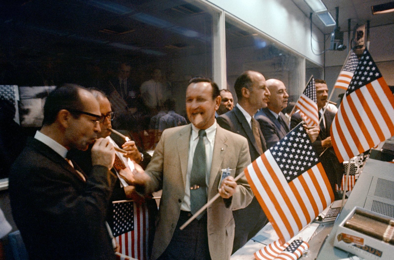 "... sondern gerade, weil es schwierig ist!" (J.F.K.)Im Nasa-Kontrollraum wird am 20. Juli 1969 der Erfolg der bemannten Mission "Apollo 11" auf den Mond gefeiert.Bild: © ARTE France / © NASA