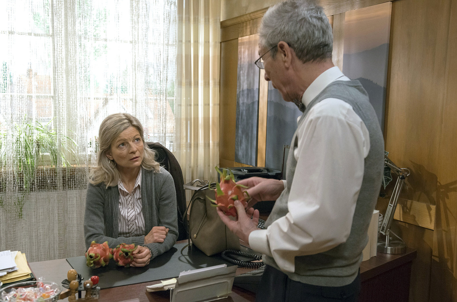 VerhandlungenHerr Weiss (Christoph Hagin) konfrontiert Frau Heilert (Adelheid Theil) mit den Vorwürfen, die gegen sie im Raum stehen.Bild: © SWR/Kluge