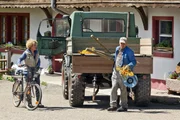 Durchgebrannte SicherungenKarl steht die Freude ins Gesicht geschrieben, als Beas (Christiane Brammer) rote Rostlaube wieder über den Hof fährt. Leider fällt die Begrüßung um einiges frostiger aus, als der Bauer sich das erwartet hatte.Bild: © SWR