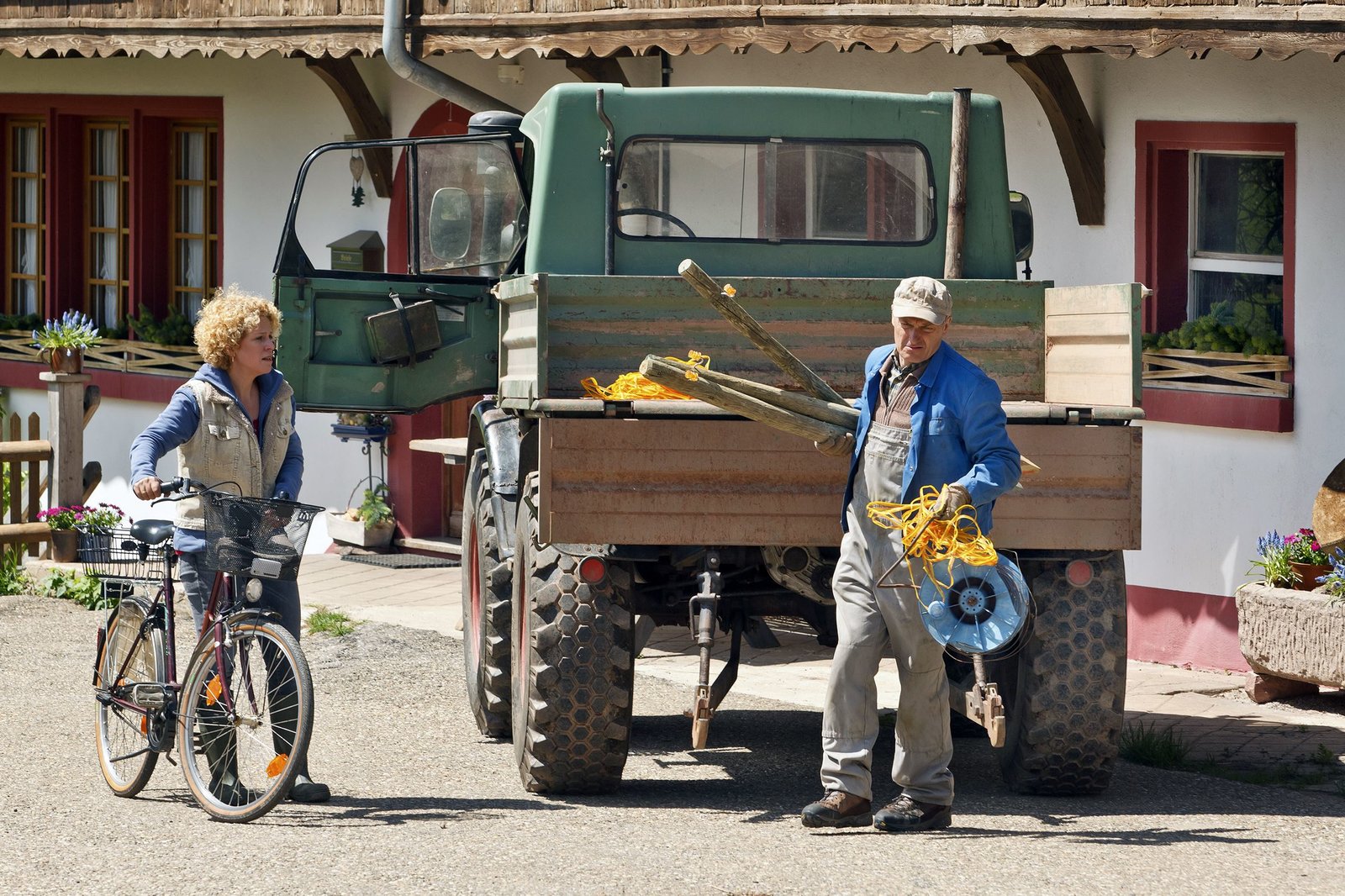 Alles inklusiveBea (Christiane Brammer) möchte auf allen Hochzeiten tanzen. Sie kommt mal wieder zu spät. Karl (Peter Schell) hat die Hofarbeit schon alleine erledigt.Bild: © SWR/Sebera