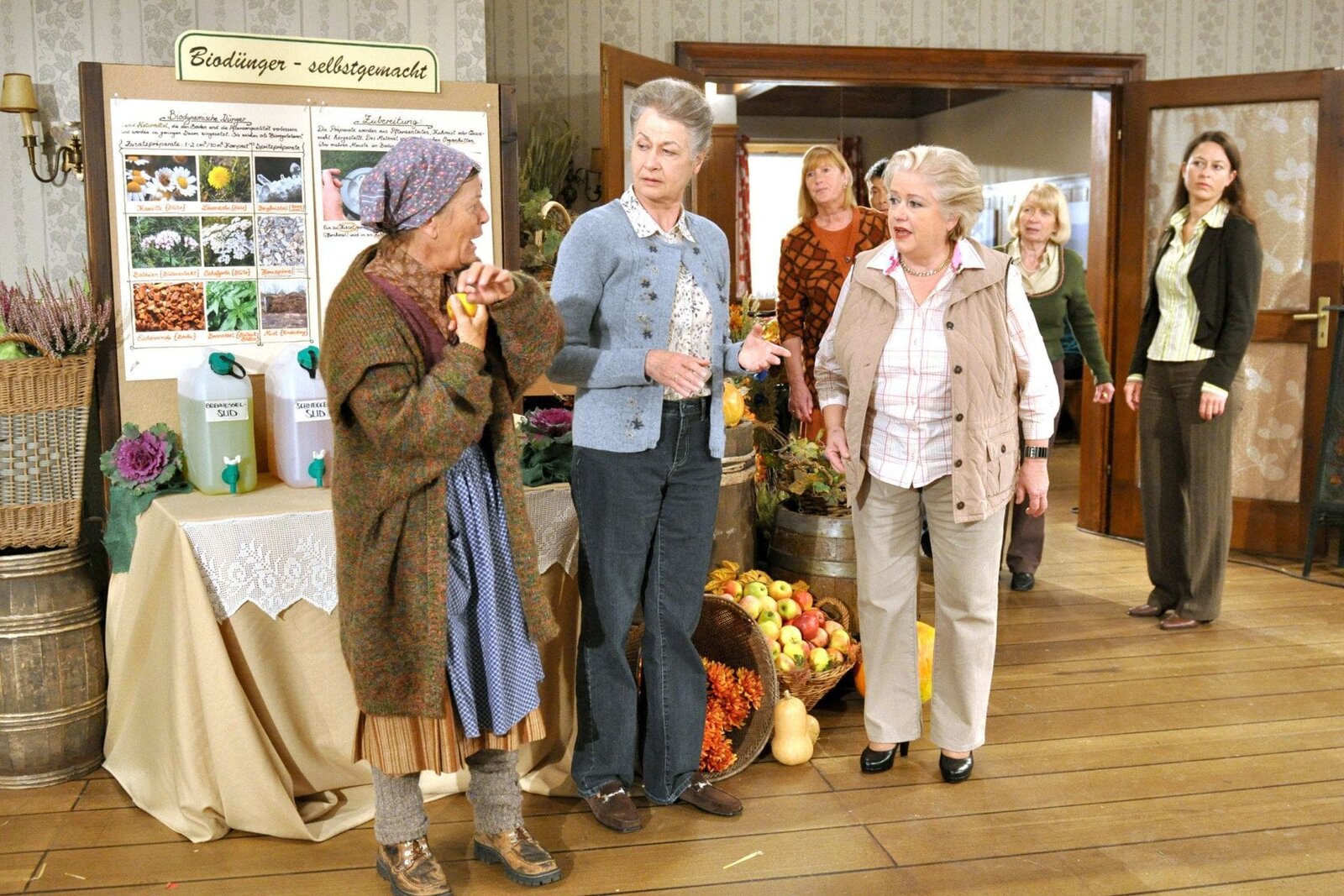 Natürliche SchönheitSWR Fernsehen DIE FALLERS - DIE SWR SCHWARZWALDSERIE FOLGE 783, "Natürliche Schönheit", am Sonntag (06.10.13) um 19:15 Uhr. Was Johanna sich für das Erntedankfest hat einfallen lassen, das geht Leni eindeutig zu weit: Eine Ausstellung zu biodynamischem Anbau nach dem Mond! Leni ist sich sicher, dass Johanna sich da wieder einmal von der Kräuterhex' hat beeinflussen lassen....V.li.n.re.: Lioba (Lisbeth Felder), Johanna (Ursula Cantieni), Landfrau Martha Bremer (Monika Kerpe), Tu (Maverick Quek, halb verdeckt), Leni (Heidi Vogel-Reinsch), Landfrau Maria Schreiner (Inge Kiefer), Stefanie Rabenalt (Nadine Kettler).Bild: © SWR/Christina Appel