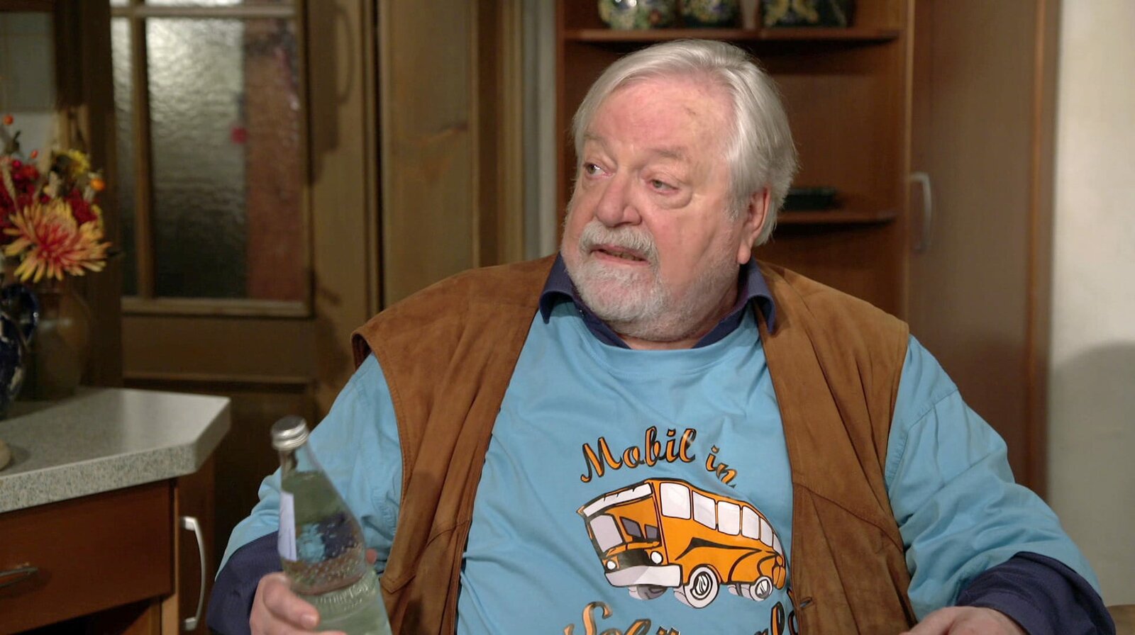 Müh und NotHermanns (Wolfgang Hepp) Fahrdienst für den Bürgerbus ist zu Ende, völlig erschöpft, aber glücklich, kommt er nach Hause.Bild: © SWR