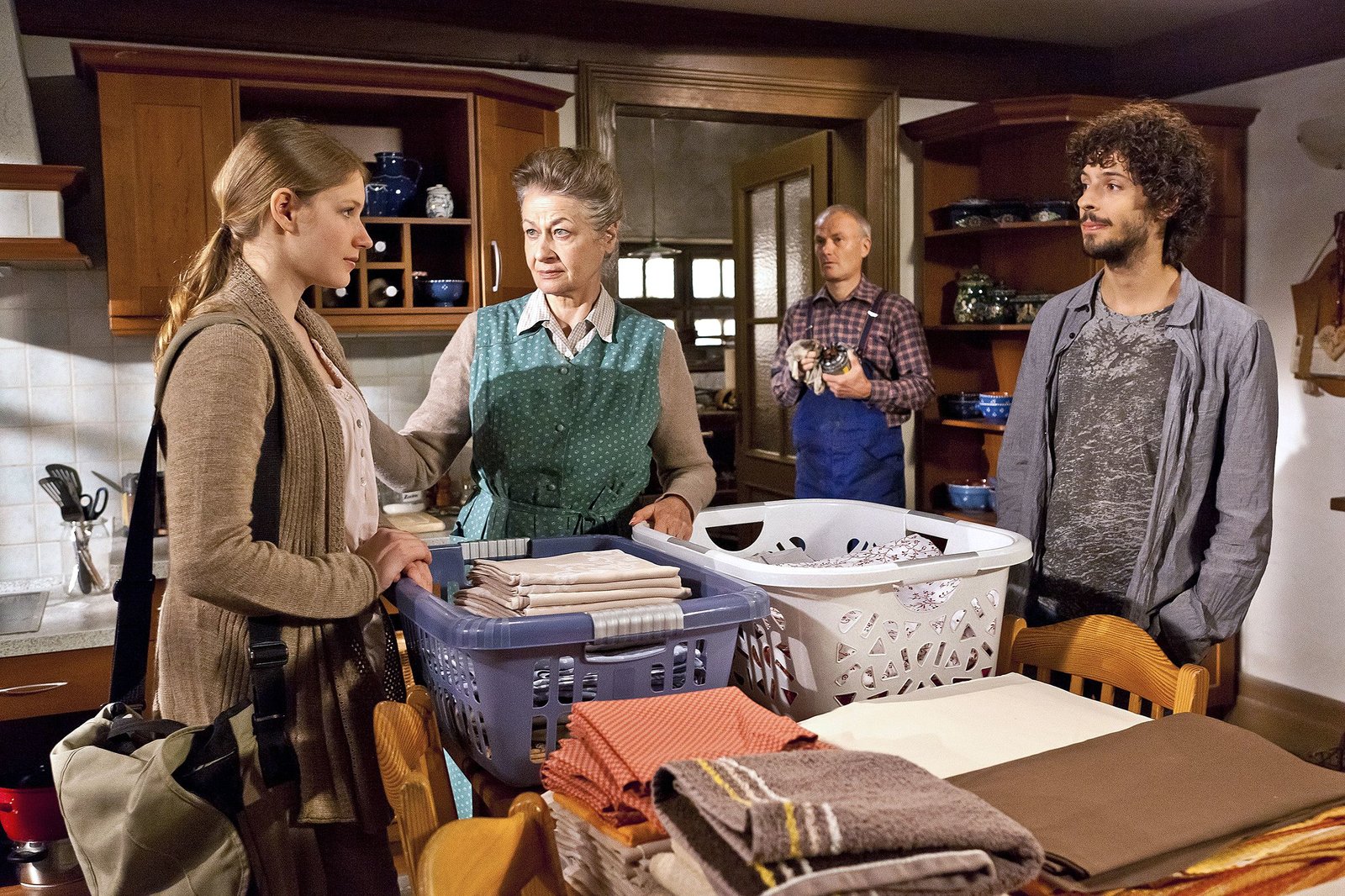 PantoffelheldinnenSWR Fernsehen DIE FALLERS - DIE SWR SCHWARZWALDSERIE FOLGE 752, "Pantoffelheldinnen", am Sonntag (09.12.12) um 19:15 Uhr. Franz (Edgar-M. Marcus, li.) fühlt sich durch Sophies (Janina Flieger, Mitte) vorübergehenden Einzug ins Gesindehaus mehr als belästigt. Rechts Heinz (Thomas Meinhardt).Bild: © SWR/Pagés