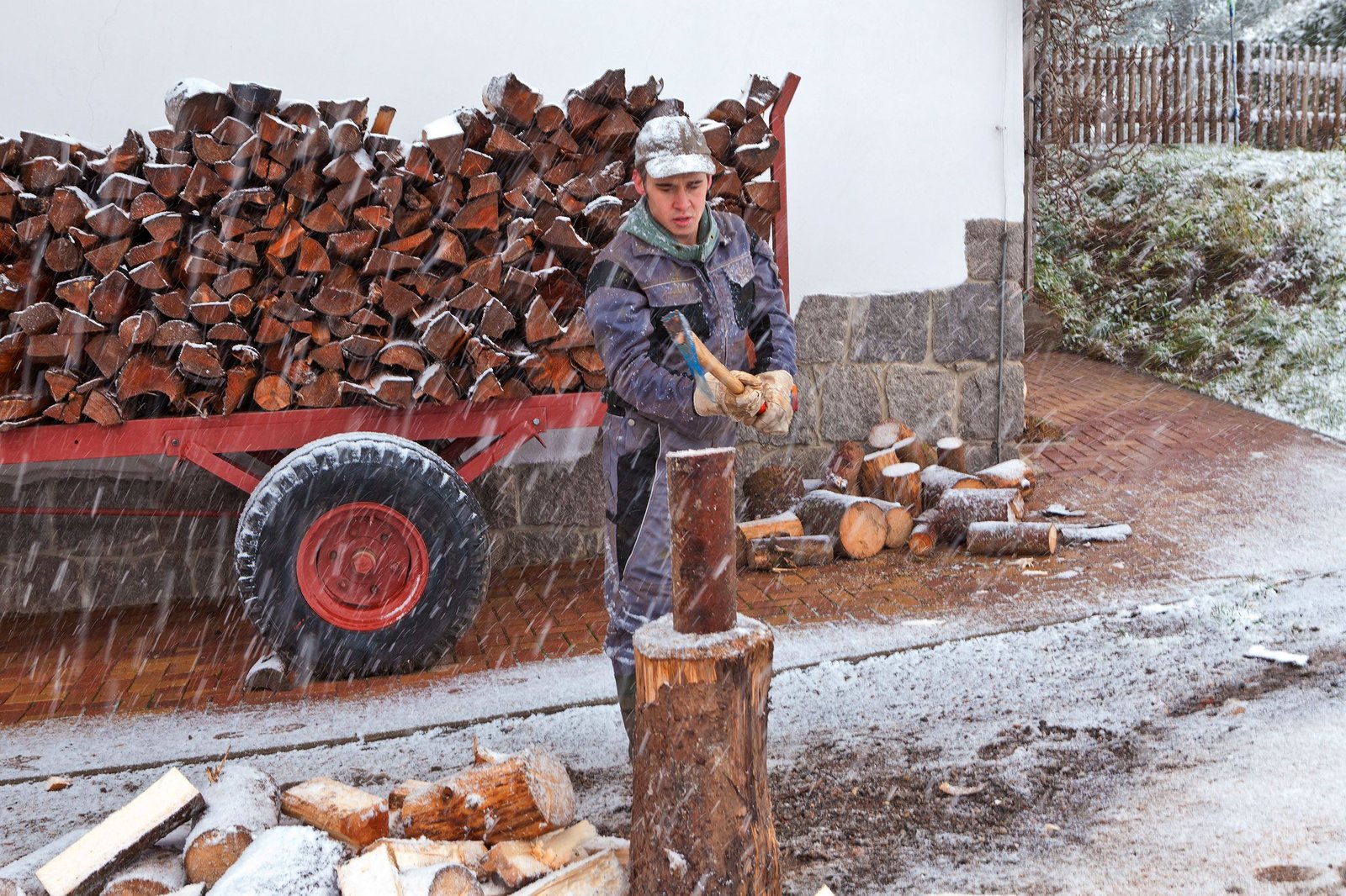 Von Tannen und PannenSebastian (Dominik Stricker) reagiert seine Enttäuschung über Jenny beim Holzhacken ab.Bild: © SWR/Sebera