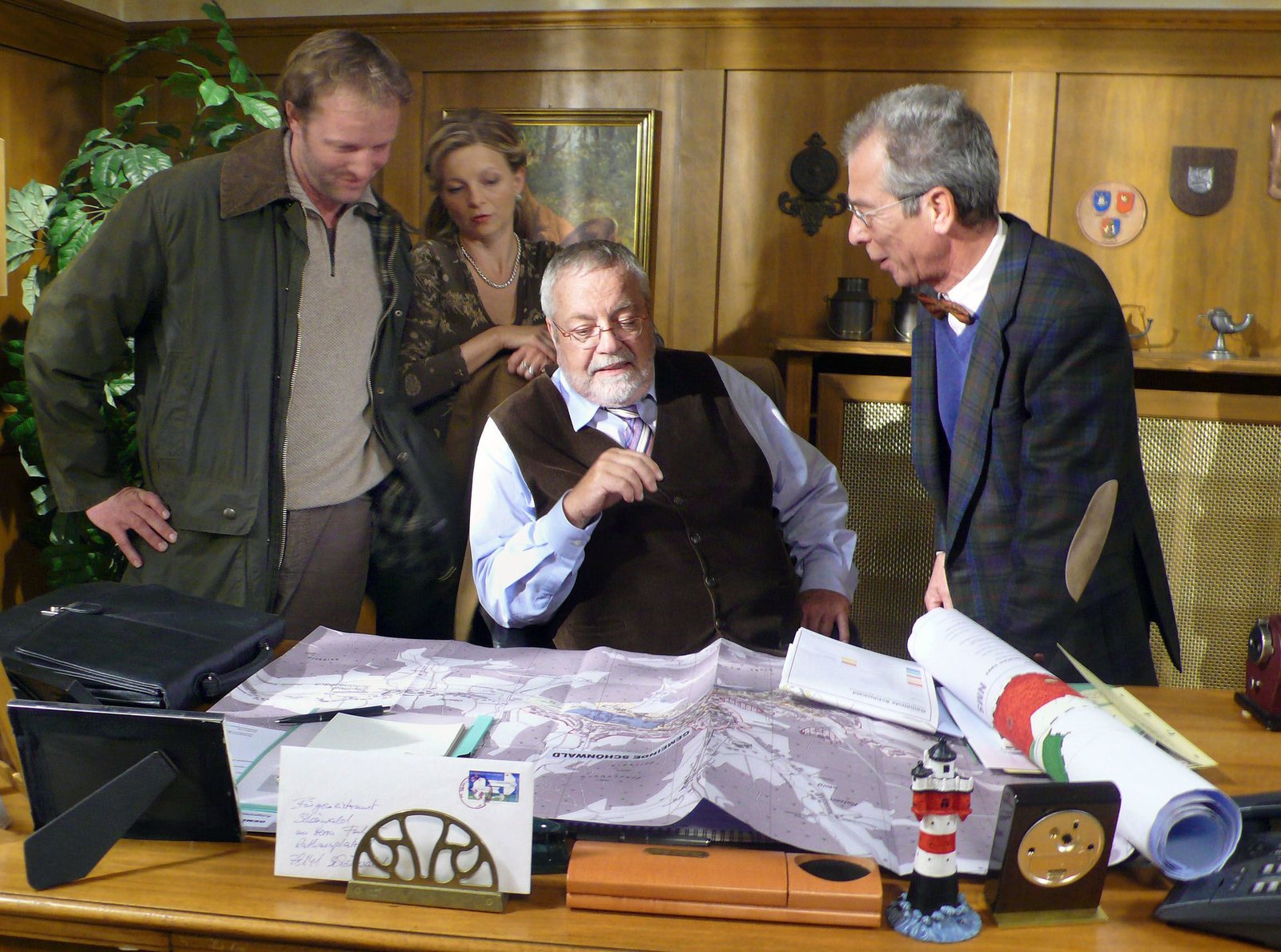 VerletzungenSWR DIE FALLERS - EINE SCHWARZWALDFAMILIE Folge 581 "Im Eifer des Gefechts", Regie Sebastian Monk, am Sonntag (19.10.08) um 19:15 Uhr im SWR Fernsehen. Hermanns letztes und wichtigstes Projekt als BYrgermeister, das Gewerbegebiet MYhlbachtal, nimmt langsam konkrete Formen an. V.li.n.re.: Bernd (Martin Wangler), Frau Heilert (Adelheid Theil), Hermann (Wolfgang Hepp) und Herr Weiss (Christoph Hagin). © SWR/elbefilm, Lorenz PagZs, honorarfrei - Verwendung gemS§ der AGB im engen inhaltlichen, redaktionellen Zusammenhang mit genannter SWR-Sendung bei Nennung: "Bild: SWR/PagZs" (S2 ). SWR-Pressestelle/Fotoredaktion, Tel. 07221/929-2287,-3852, Fax-2059, foto@swr.de.Bild: © Credit: SWR/elbefilm, Lorenz PagZs, Source: SWR-Pressestelle,