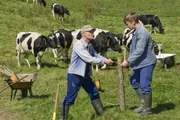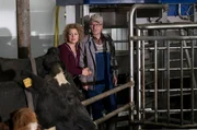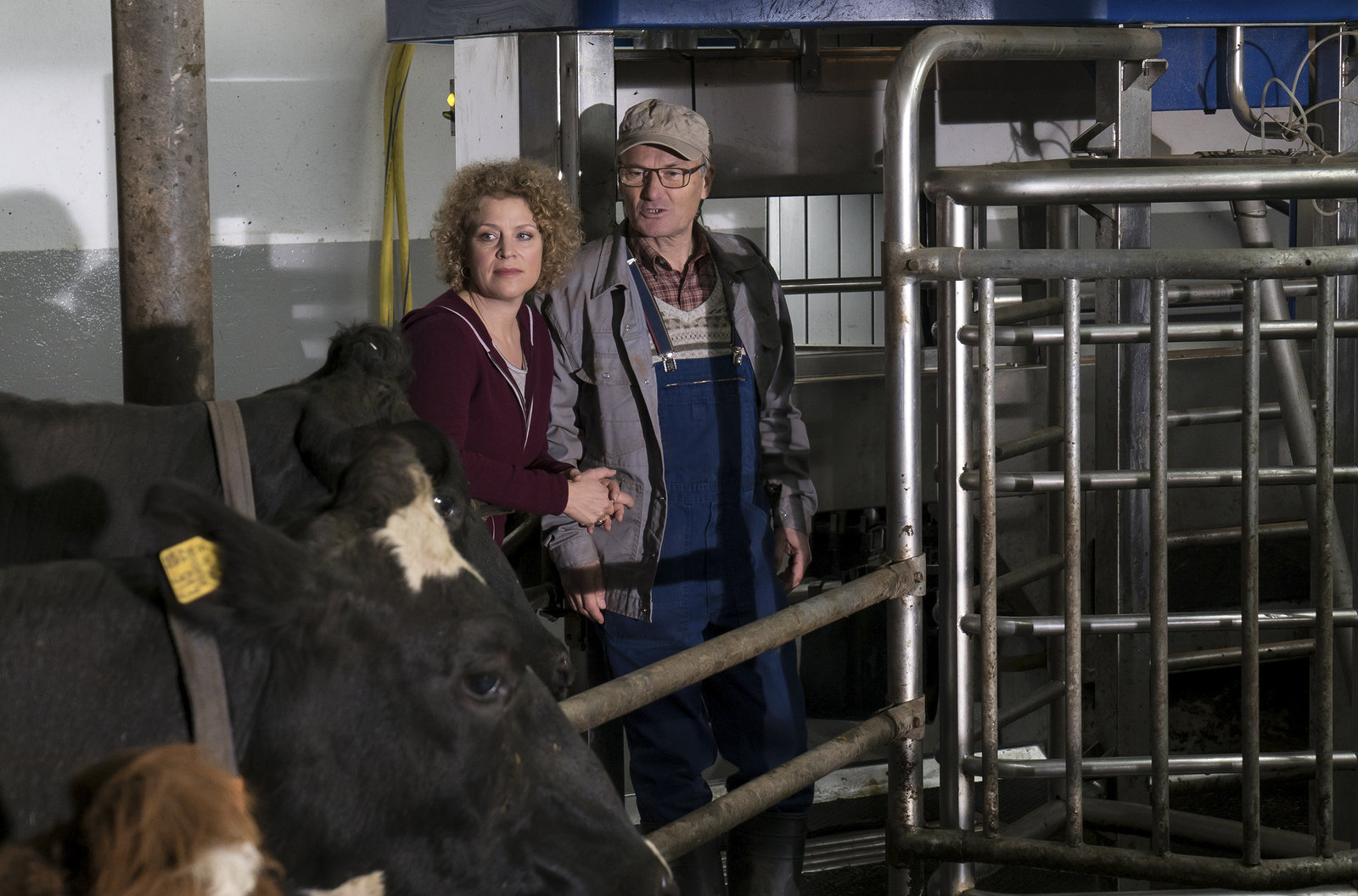 Der MelkroboterKarl (Peter Schell) zeigt Bea (Christiane Brammer) stolz den neuen Melkroboter.Bild: © SWR/Schweigert