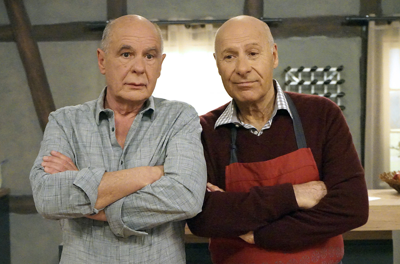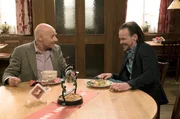 Die PraktikantinFranz (Edgar-M. Marcus, li.) trifft beim Mittagessen im Löwen auf Constantin (Robert Besta).Bild: © SWR/Schweigert