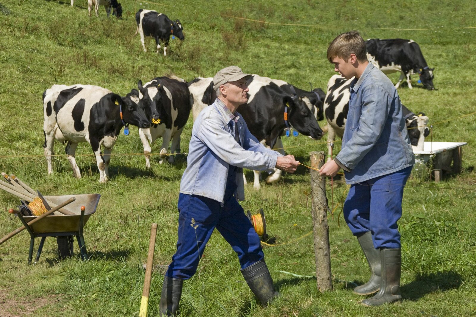 Zeit der EntscheidungSWR Fernsehen DIE FALLERS - DIE SWR SCHWARZWALDSERIE FOLGE 747, "Zeit der Entscheidung", am Sonntag (14.07.13) um 19:15 Uhr. So oft er kann hilft Sebastian (Dominik Stricker, re.) Karl (Peter Schell, li.) auf dem Hof. Karl ist froh darüber, denn bei der Arbeit verstehen sich die beiden blind.Bild: © SWR/Martin Furch