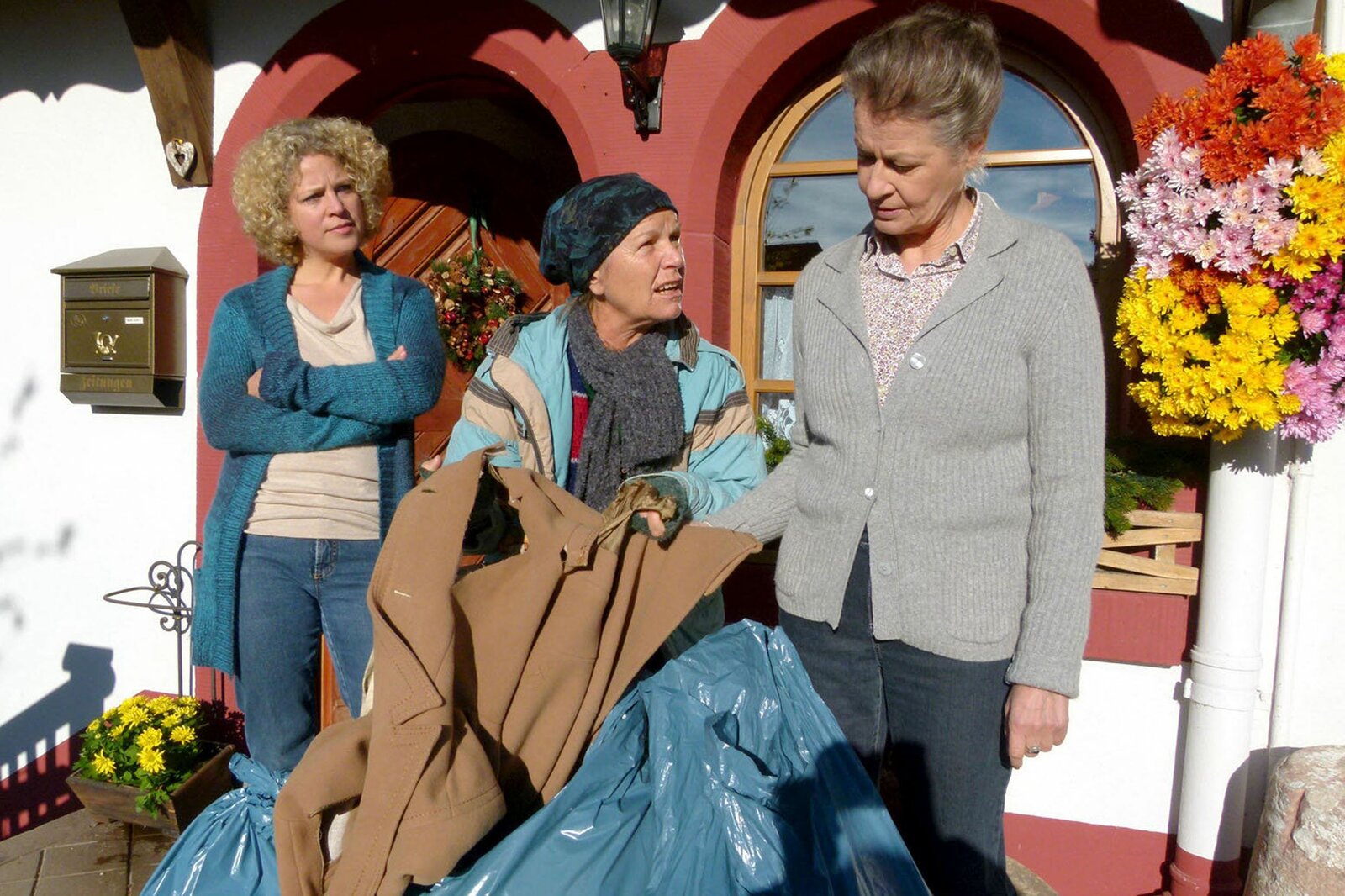 SchattenSWR Fernsehen DIE FALLERS - DIE SWR SCHWARZWALDSERIE FOLGE 749, "Schatten", am Sonntag (18.11.12) um 19:15 Uhr. Bea (Christiane Brammer, li.) und Johanna (Ursula Cantieni, re.) haben jede Menge Jacken und Mäntel für die Altkleidersammlung zusammengetragen. Lioba (Lisbeth Felder) wird zornig, als sie sieht, wie die beiden noch gute Kleidung wegwerfen wollen.Bild: © SWR/Pagés