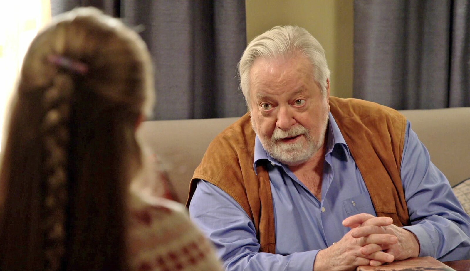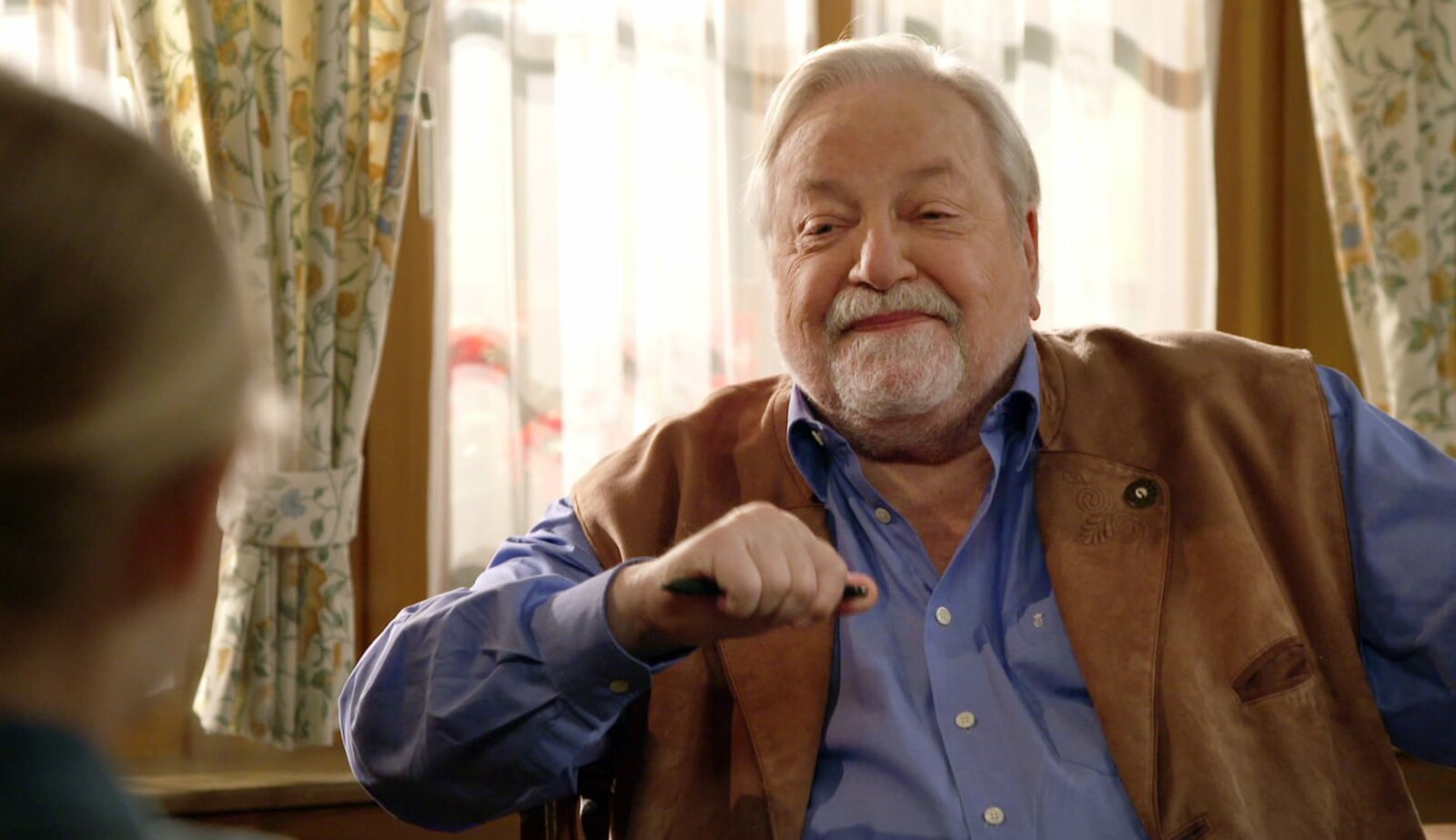 HerausforderungenZiemlich aufgeregt kommt Carlotta (Mila Breitner, li.) aus der Schule nach Hause. Zum einem, weil ihre Lehrerin ein Baby bekommt, zum anderen, weil sie eine besondere Hausaufgabe hat: Nur Ur-Opa Hermann (Wolfgang Hepp, re.), hat für die kleinste Fallerin von Herzen gerne Zeit.Bild: © SWR