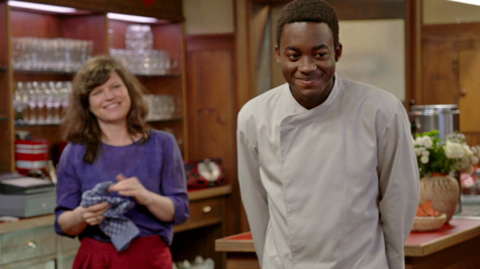 BalanceaktSWR Fernsehen DIE FALLERS - DIE SWR SCHWARZWALDSERIE FOLGE 1128, "Balanceakt", am Sonntag (30.01.22) um 19:15 Uhr. Als Tu sich verletzt, übernimmt Tayo (Charles Henri Junior Sehba, re.) für einen Tag die Küche – mit Erfolg! Eva (Lucie Muhr, li.) freut sich für Tayo. © SWR, honorarfrei - Verwendung gemäß der AGB im engen inhaltlichen, redaktionellen Zusammenhang mit genannter SWR-Sendung bei Nennung "Bild: SWR" (S2+). SWR Presse/Bildkommunikation, Baden-Baden, Tel: 07221/929-22287, foto@swr.deBild: © SWR / SWR Presse/Bildkommunikation