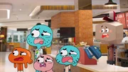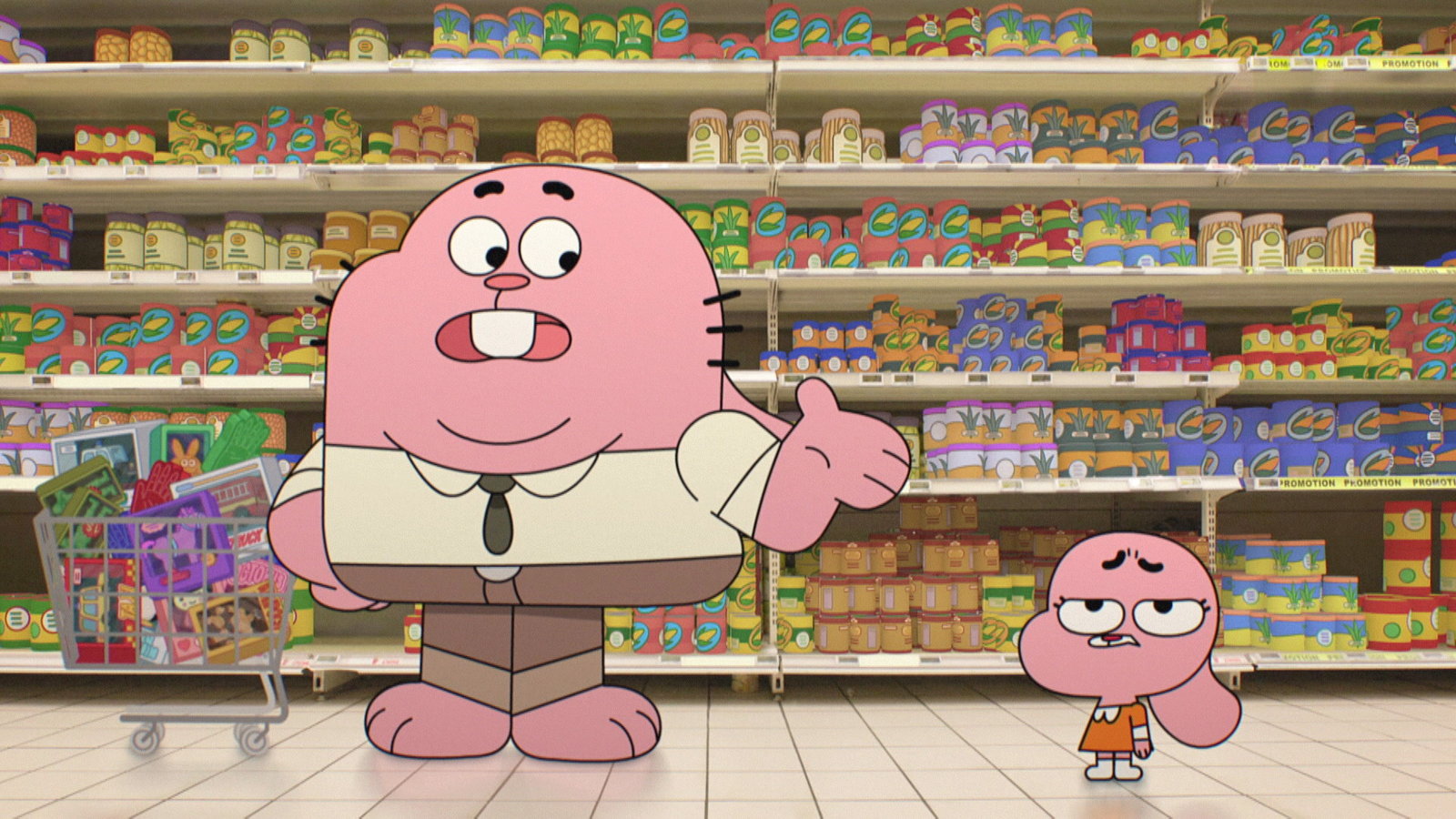 Die schlechte LauneVater Watterson (l.) versucht, Gumballs Laune mit dem Einkauf von unsinnigen Dingen zu verbessern.Bild: © ZDF und Turner Broadcasting System International
