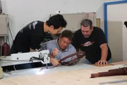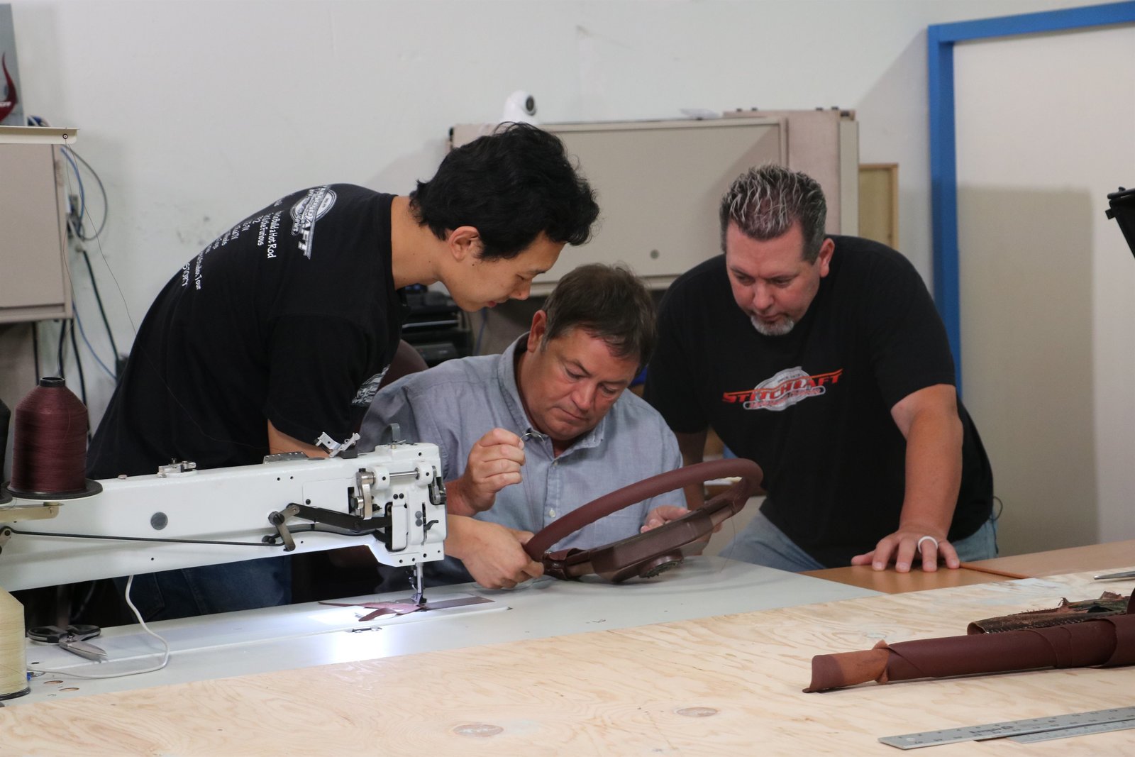 Toyota Celica SupraMike Brewer, Revo Reeves and Wei Wei Li work on the steering wheel at Stitchcraft.Bild: © Discovery Communications