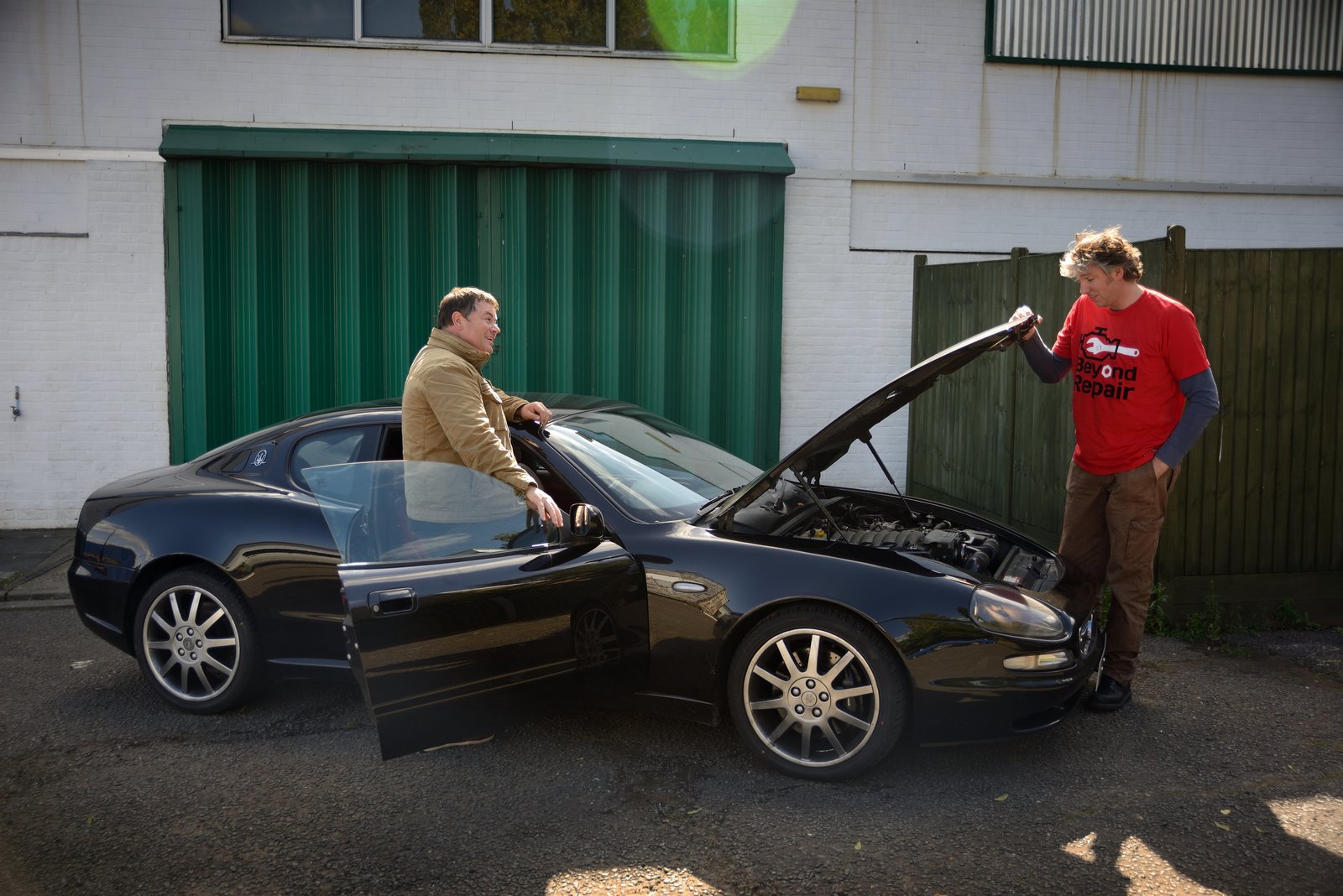 Maserati 3200 GTEdd and Mike with the Maserati outside the workshop.Bild: © Discovery Communications.