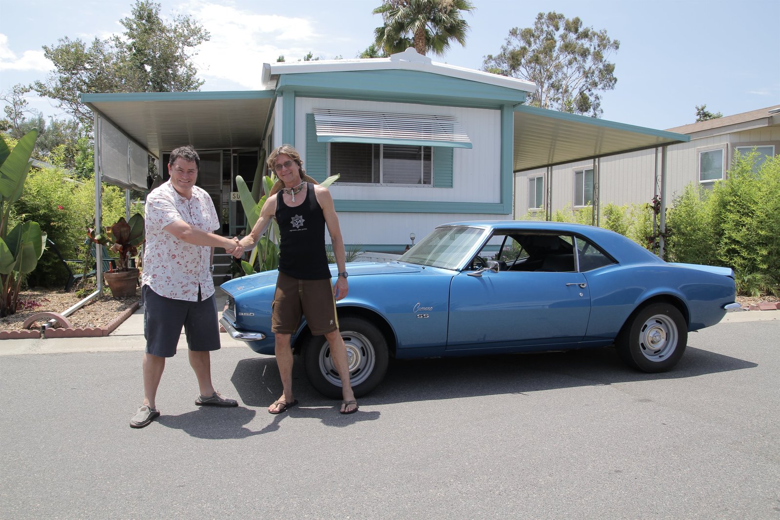 Chevrolet CamaroWide shot of Camaro on road with Mike and seller standing in front of it and shaking handsBild: © Attaboy / Discovery Communications